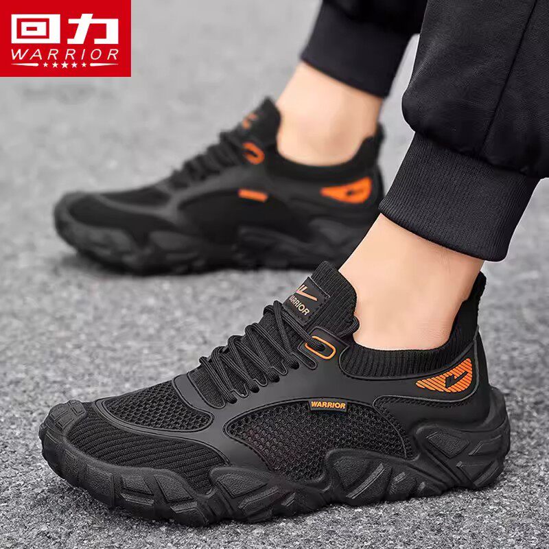 回力男鞋夏季透气网面运动鞋男士防滑耐磨网鞋休闲跑步鞋轻便黑色