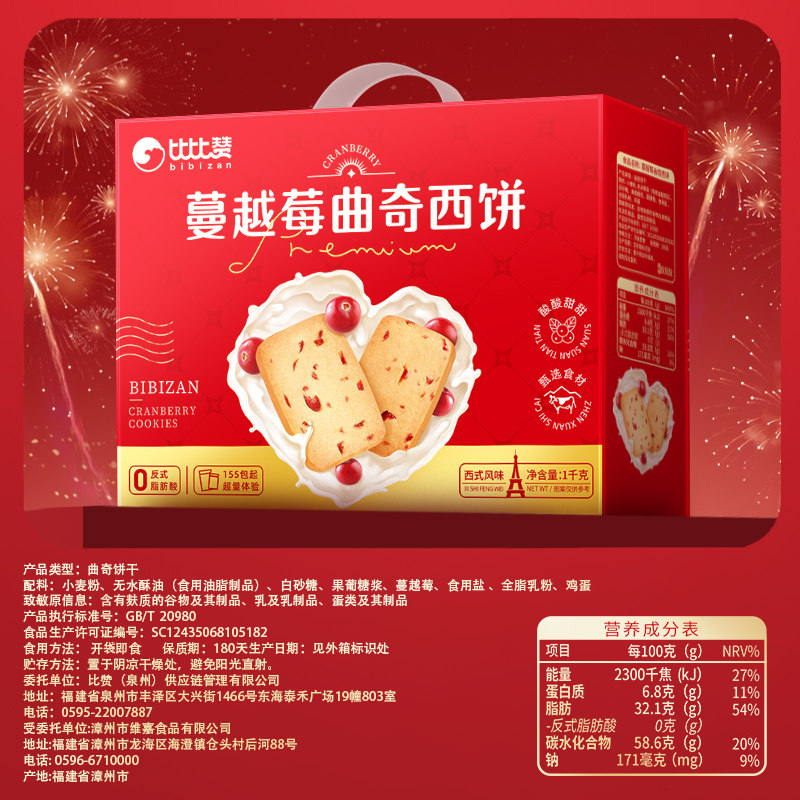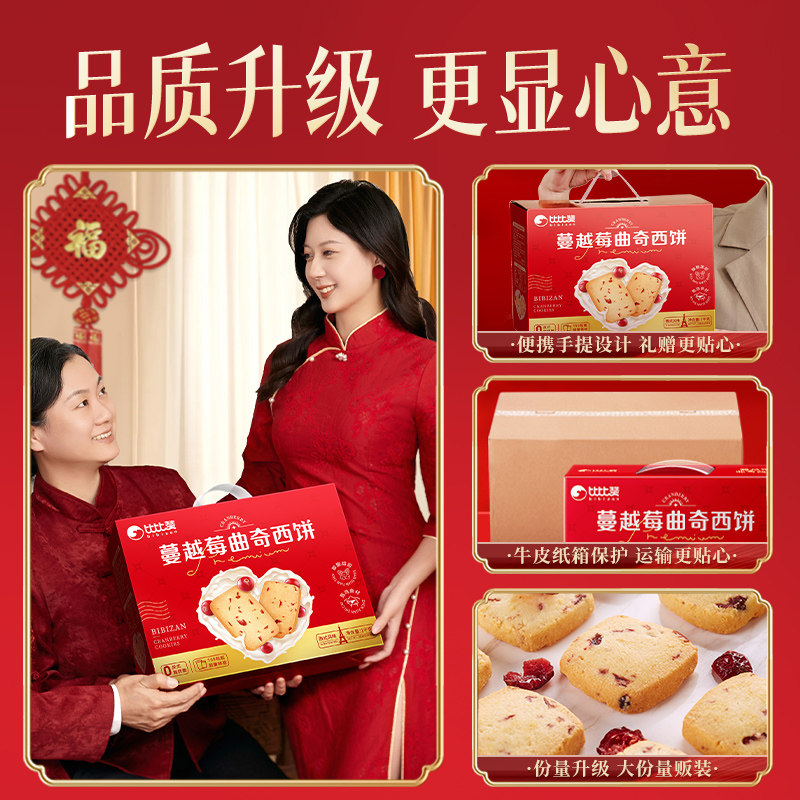 过年比比赞蔓越莓曲奇礼盒年货送礼小零食饼干小吃送长辈批发新年