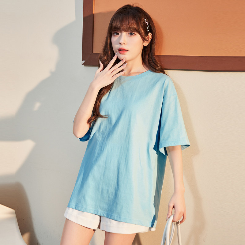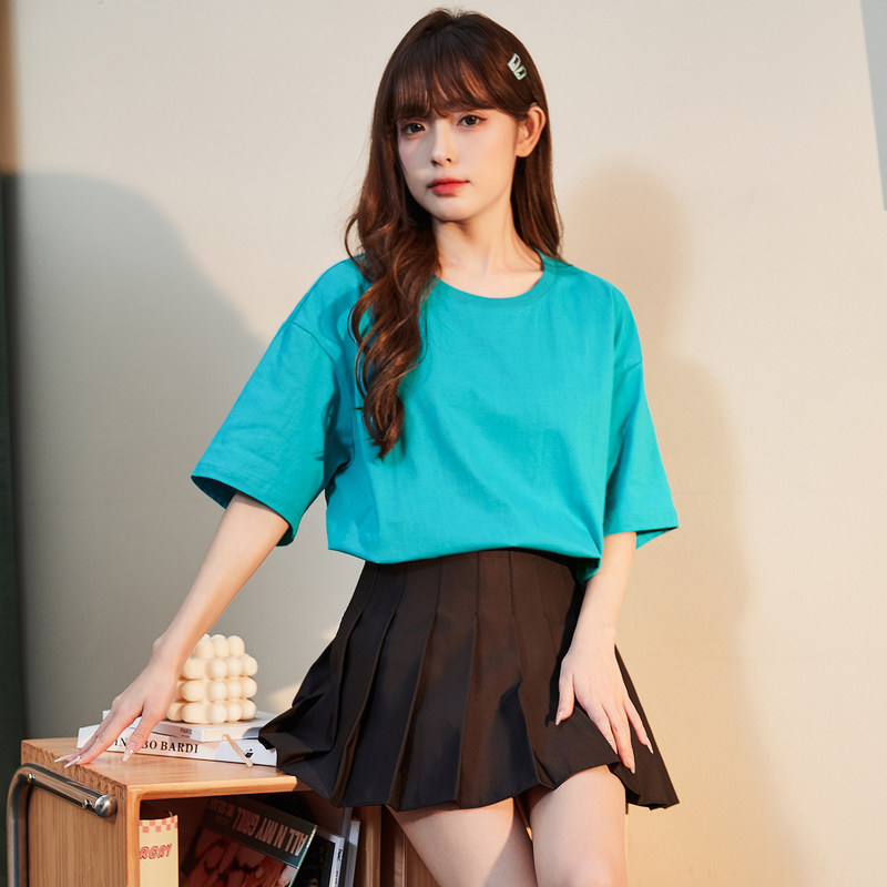 小尼力复古百搭纯棉纯色宽松短袖打底衫T恤男女体恤潮流短袖衣服T