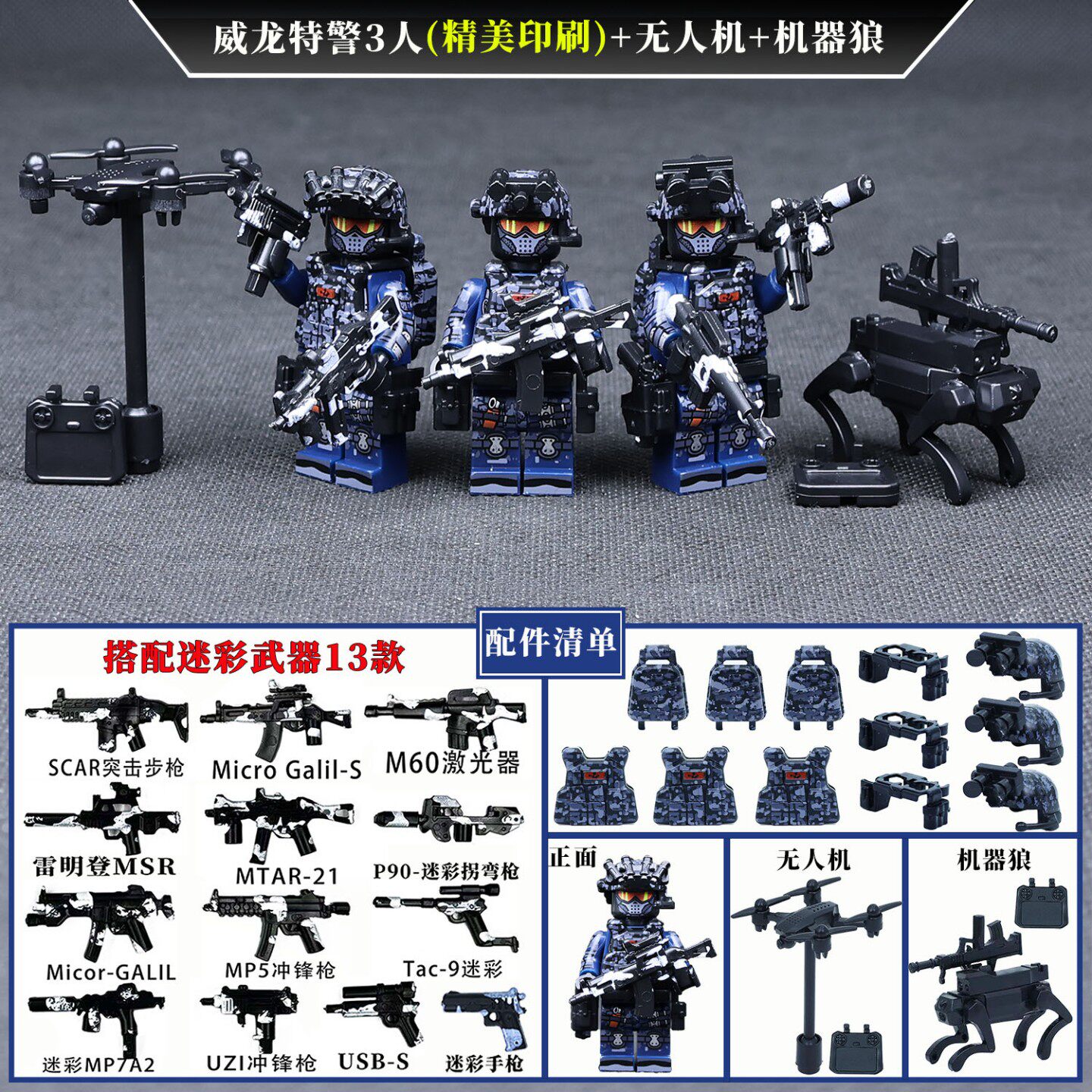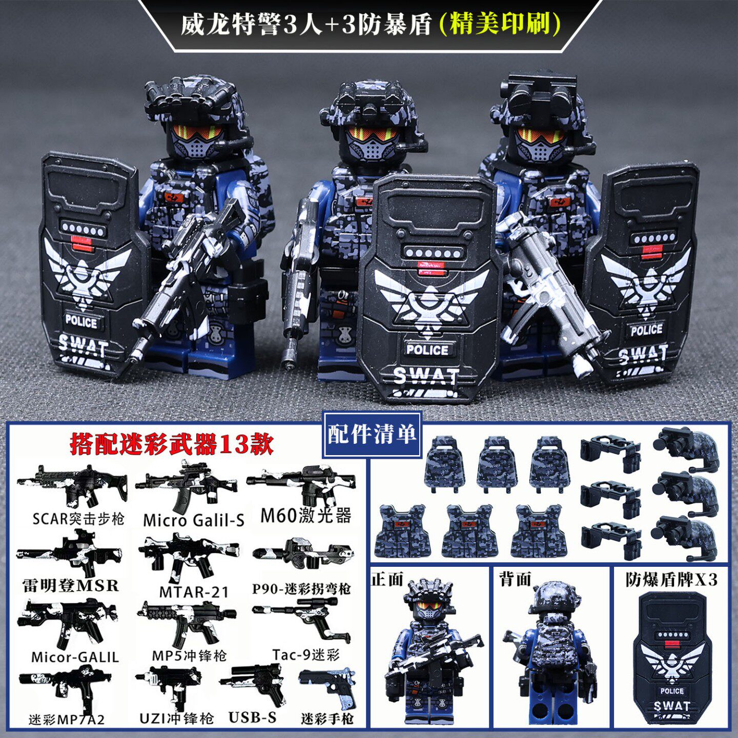 三角洲威龙特警战术拼装积木军事人仔防暴盾牌男孩玩具兼容乐高