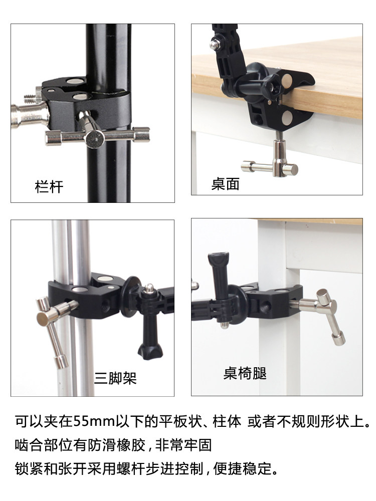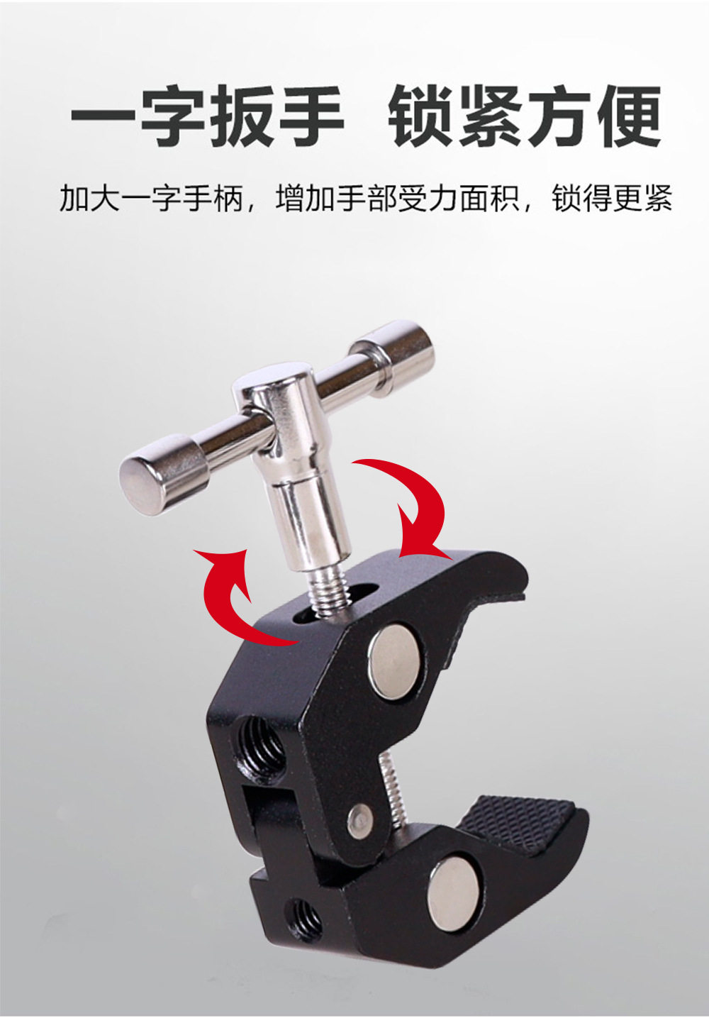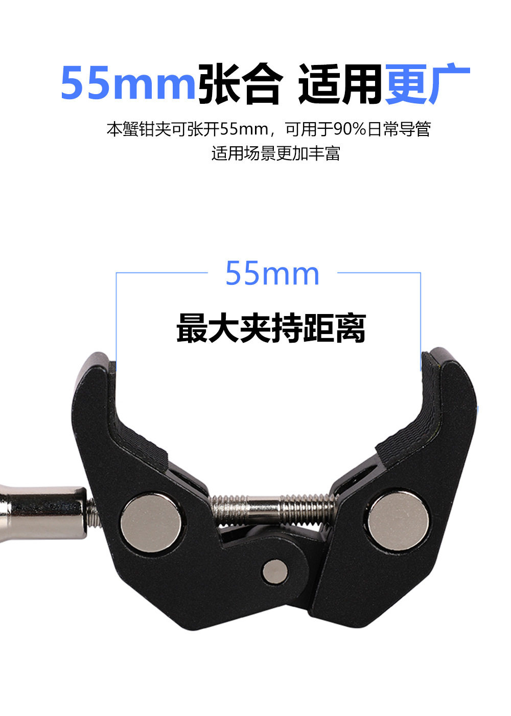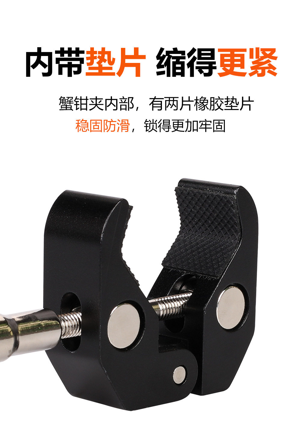 摩托车自行车骑行铝合金C型蟹钳夹桌面固定金属大力夹万向怪手魔术手臂支架摄影配件万用夹头1/4螺丝孔