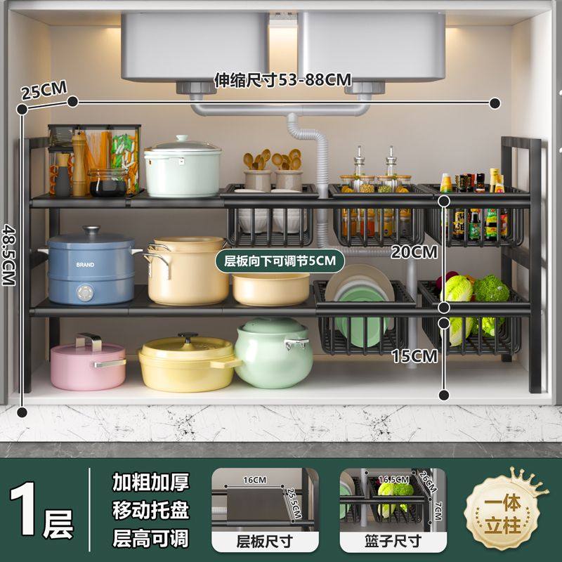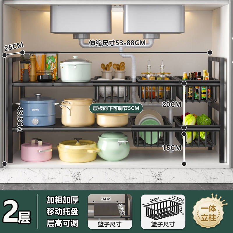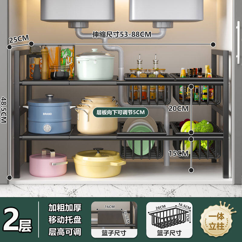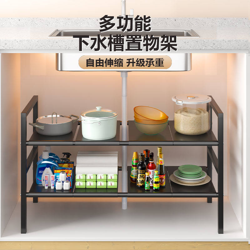 厨房下水槽落地置物架橱柜可伸缩分层架子多层锅具收纳多功能调料