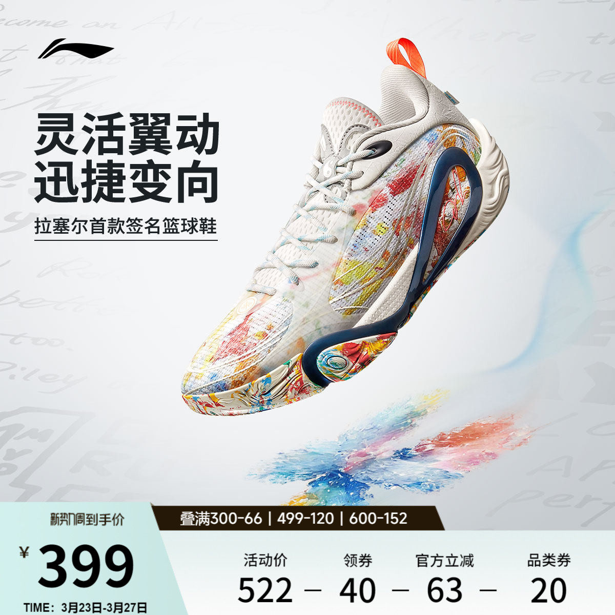李宁DLO 1 拉塞尔一代丨篮球鞋男轻量透气防滑缓震实战低帮运动鞋