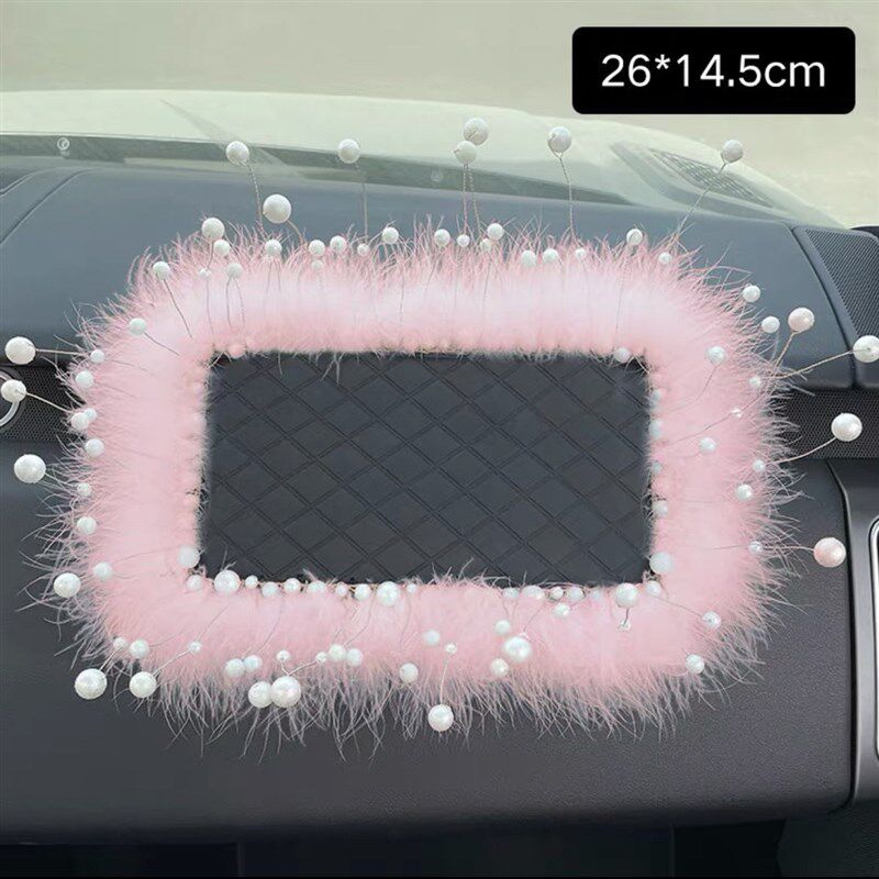 创意羽毛汽车防滑垫仪表台中控台置物垫车载摆件可爱绒毛汽车饰品