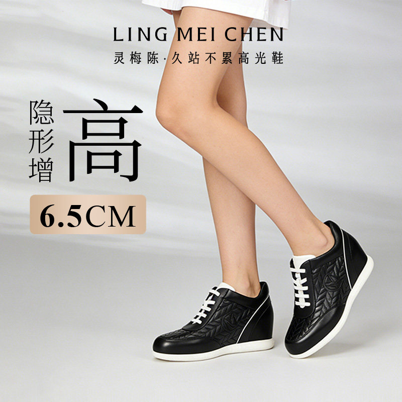 灵梅陈高光鞋黑色内增高女鞋厚底德训鞋新款真皮休闲鞋子板鞋皮鞋