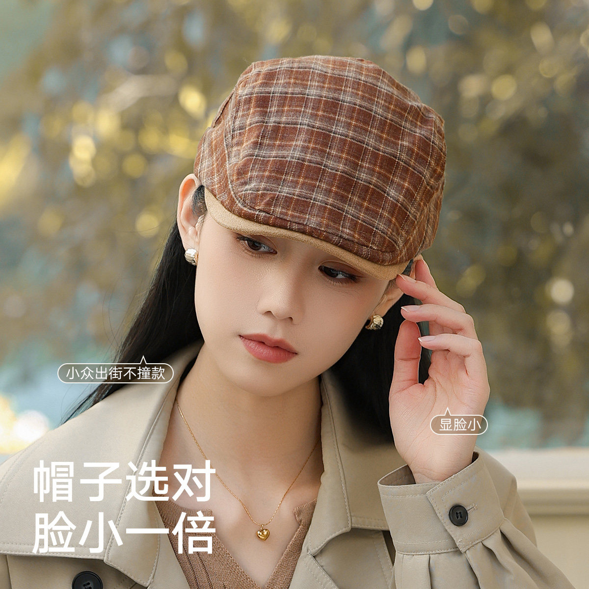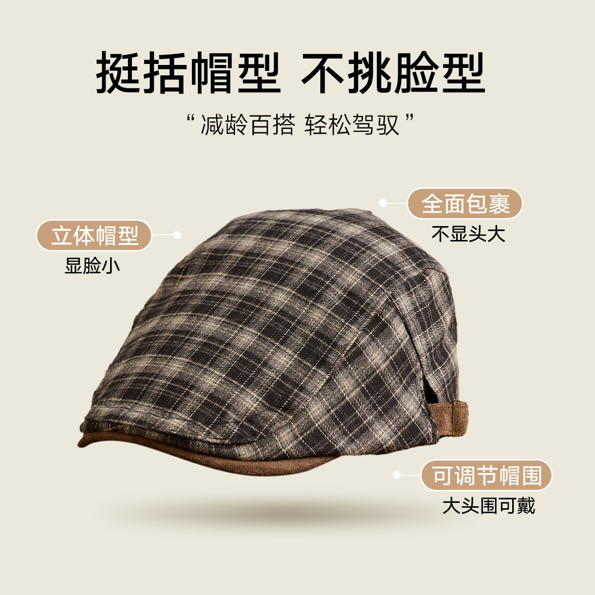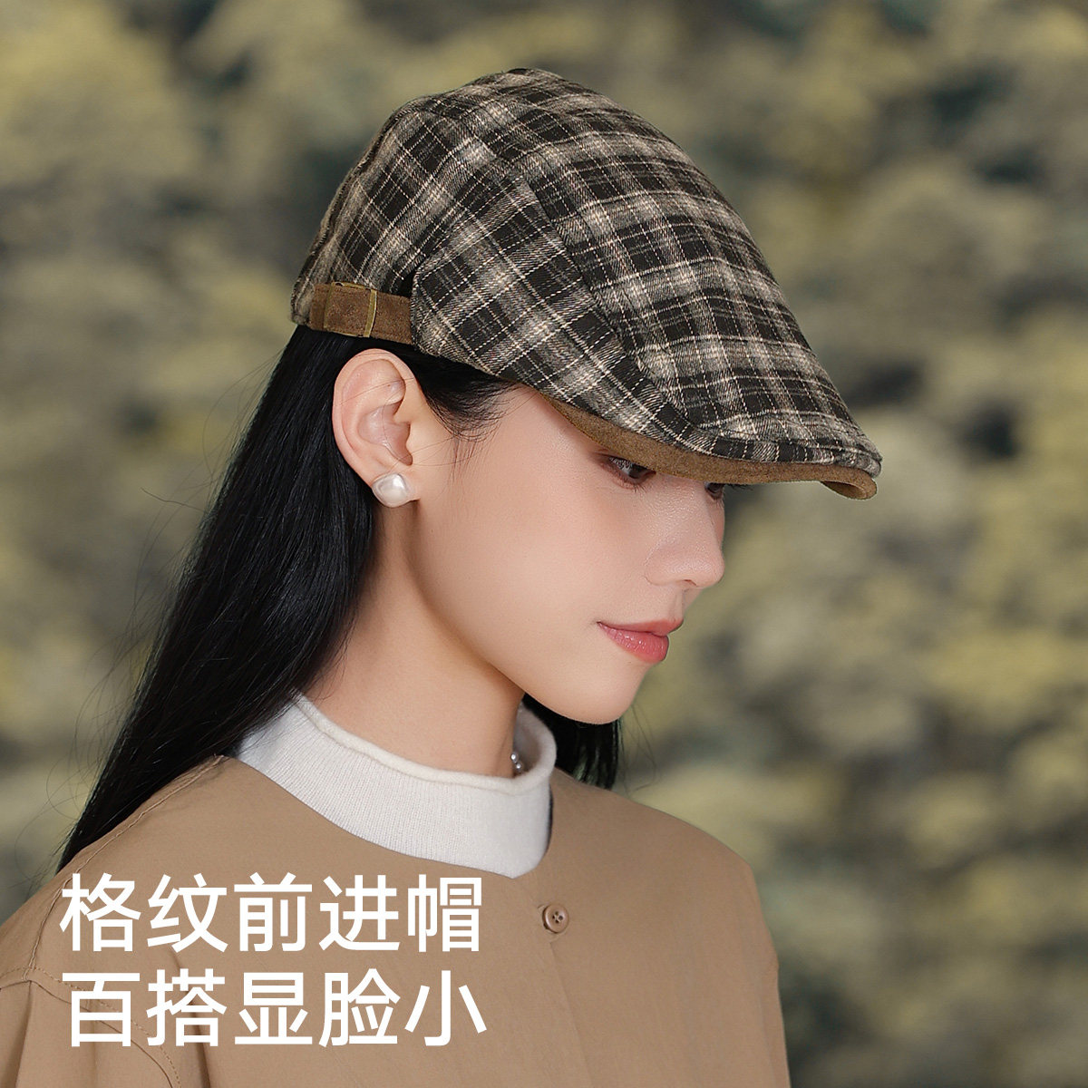 格子布贝雷帽女夏天薄款透气防晒帽青年出游太阳帽鸭舌帽潮男帽L
