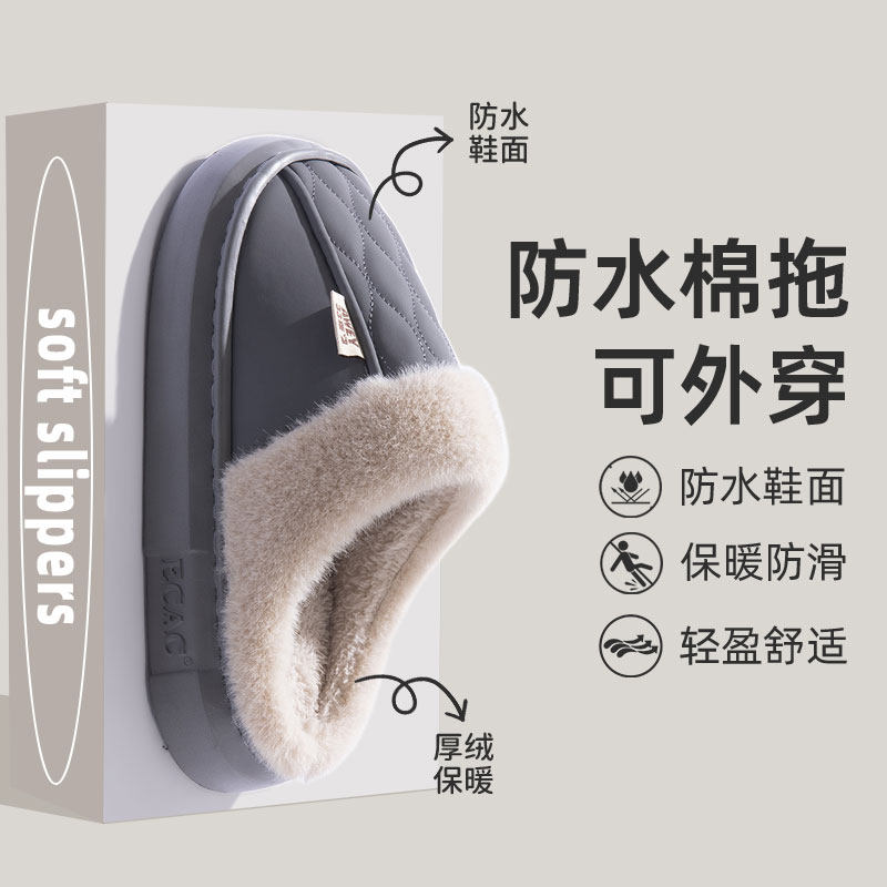 厚底男士棉拖鞋冬季2025新款室内家居加绒加厚防水防滑外穿棉拖男