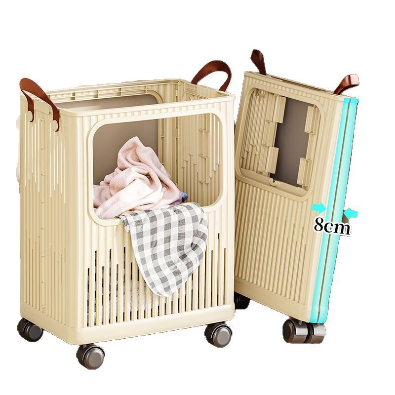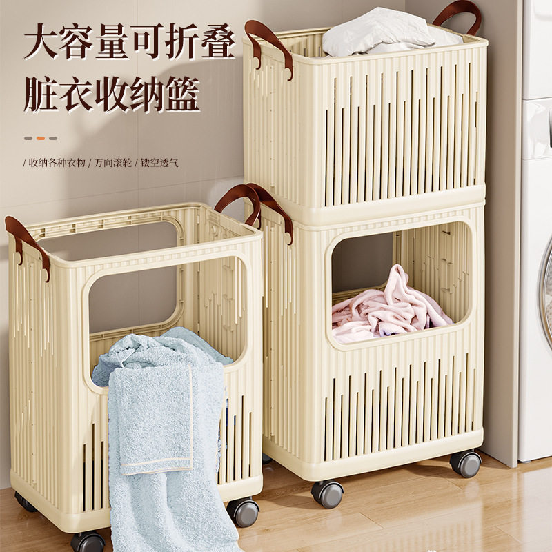 可折叠脏衣收纳篮带轮手提式镂空夹缝脏衣篓卫生间浴室玩偶收纳筐