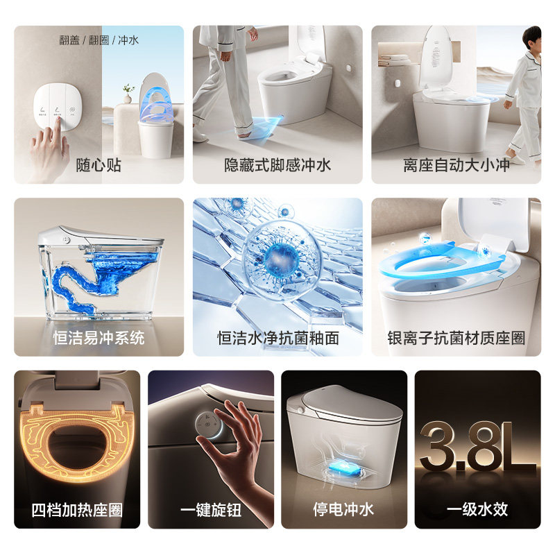 【政府补贴15%】恒洁卫浴轻智能半智能马桶脚感家用坐便器568pro