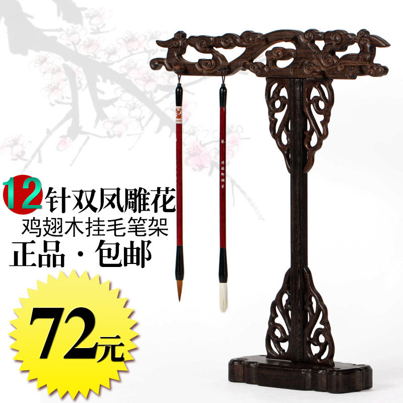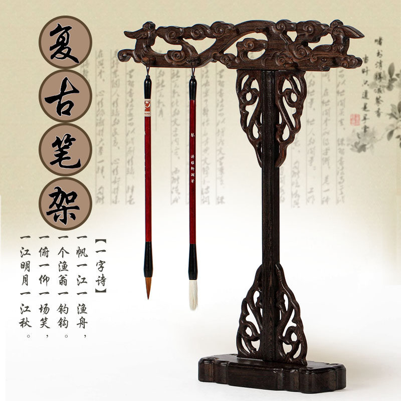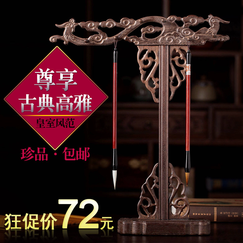 红木笔架毛笔挂大号仿古笔搁复古套装 鸡翅木毛笔架子毛笔挂架 文房四宝桌面创意收纳展示架晾笔架