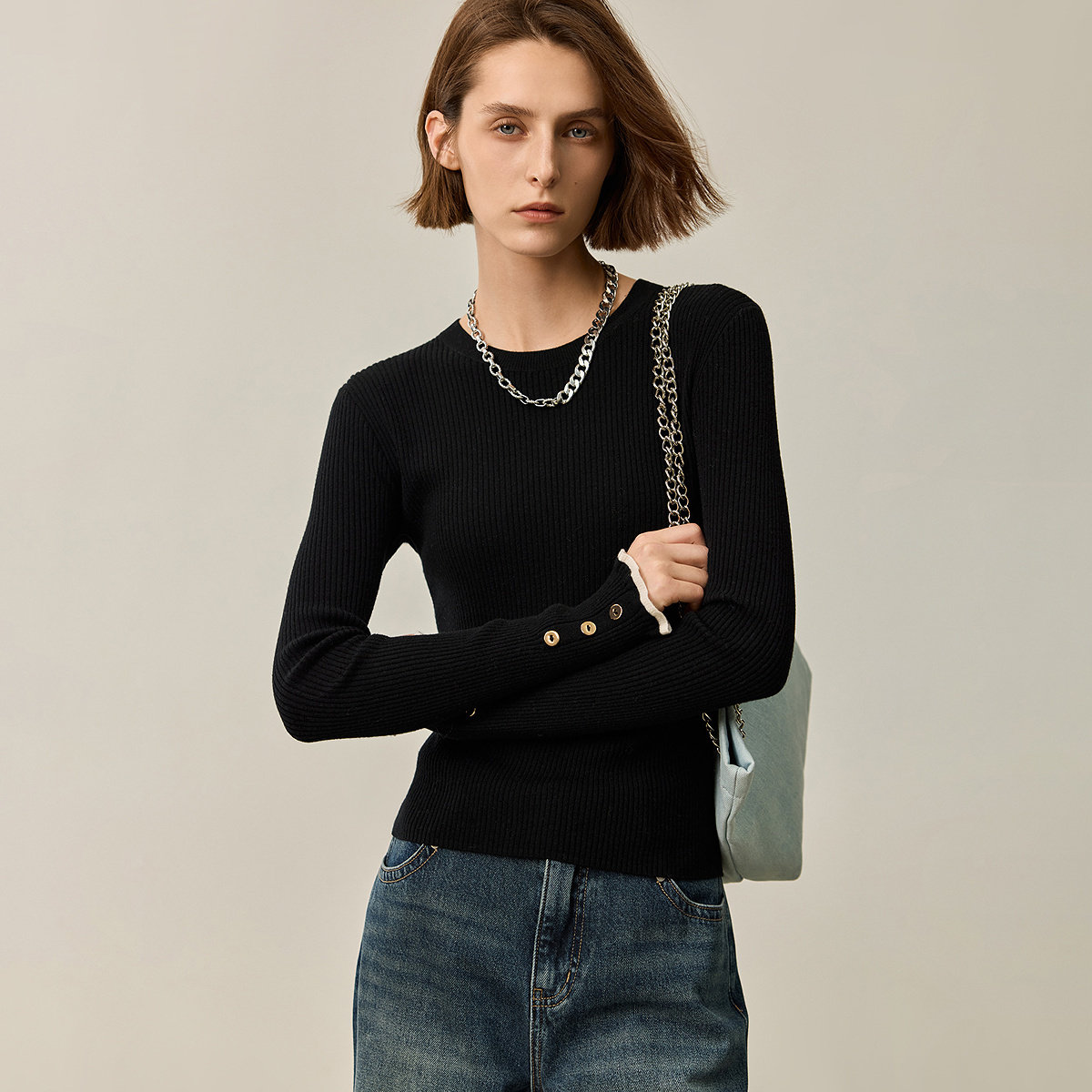 流畅百搭小圆领-经典百配圆领领口弧度自然