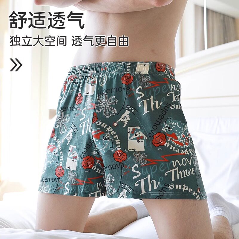 2026年新款男士内裤纯棉四角裤衩阿罗裤宽松舒适透气平角运动短裤