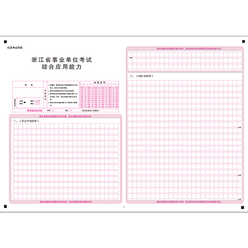 现货浙江省事业单位招聘考试 综合应用能力 答题卡答题纸媲美考试纸张可以定制各类答题卡