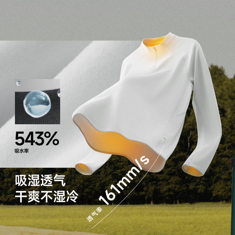 蕉下男士保暖上衣摇粒绒打底衫高弹透气宽松薄秋衣长袖半拉链T恤