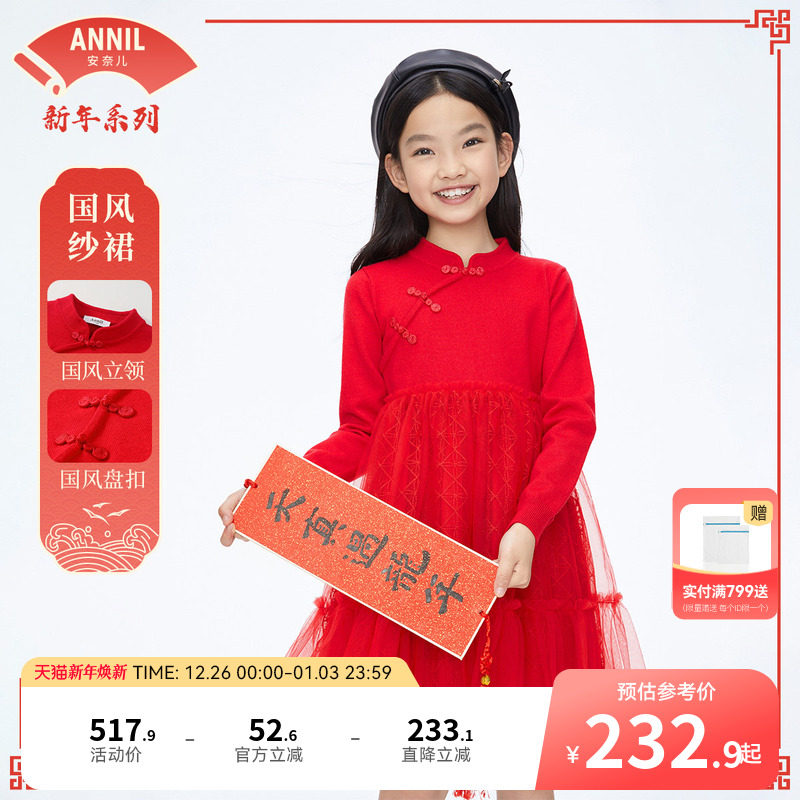 【商场同款】安奈儿童装女童连衣裙秋纱裙子AG413532