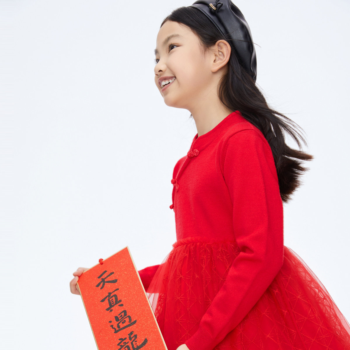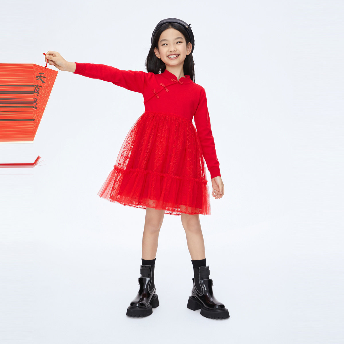 [抗菌远红外]女童连衣裙宝宝高领加绒蓬蓬网纱裙子儿童红色公主裙