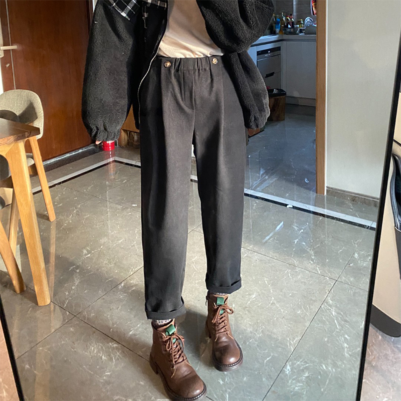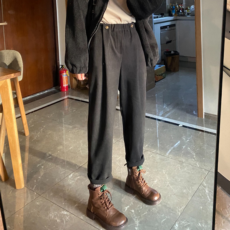 大码女装秋冬加绒垂感休闲毛呢裤女胖妹妹mm宽松显瘦萝卜哈伦裤子