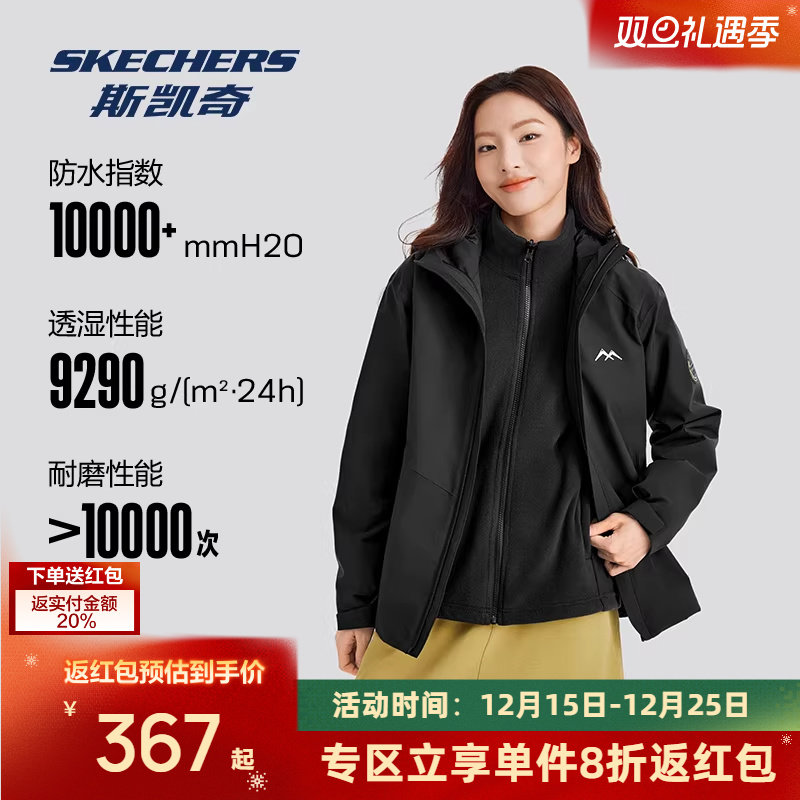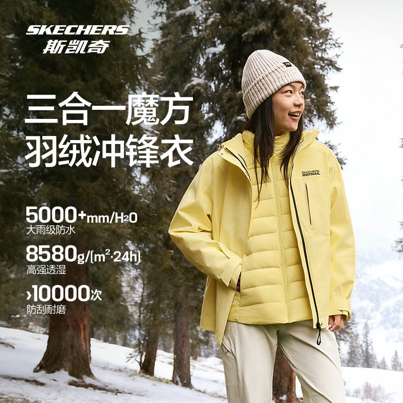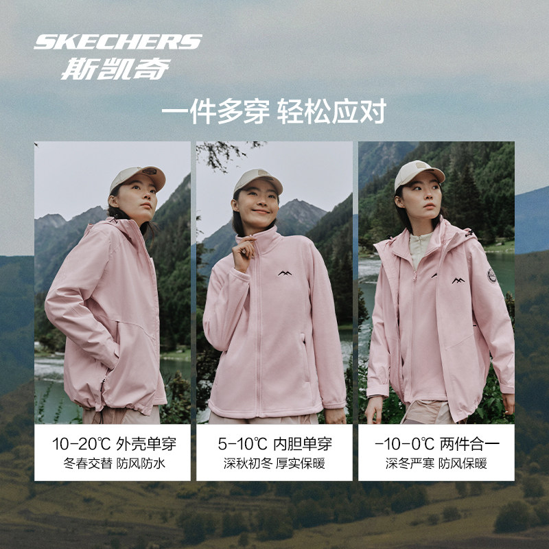 斯凯奇魔方冲锋衣冬季男女三合一保暖羽绒服户外抓绒内胆防水外套