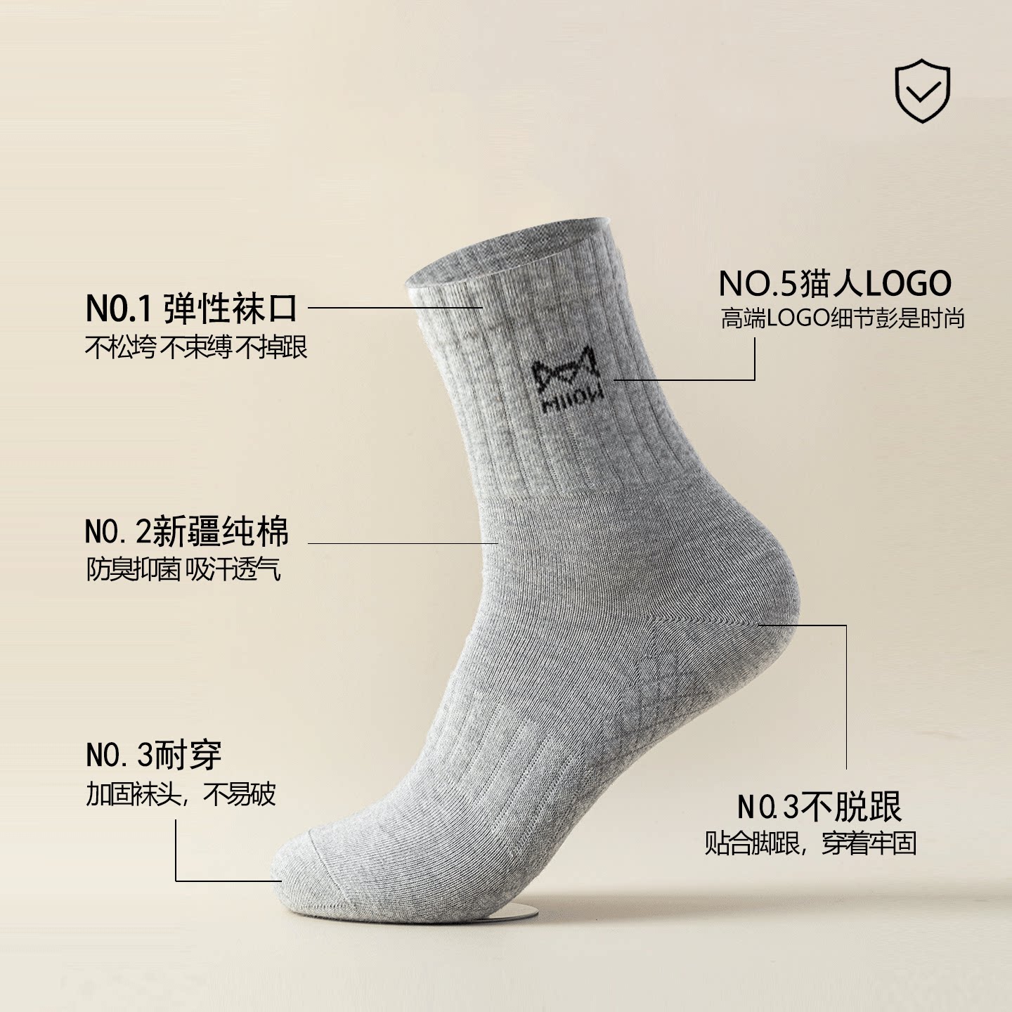 猫人男士袜子男款纯棉全棉防臭中筒袜运动秋冬长筒袜男抗菌吸汗