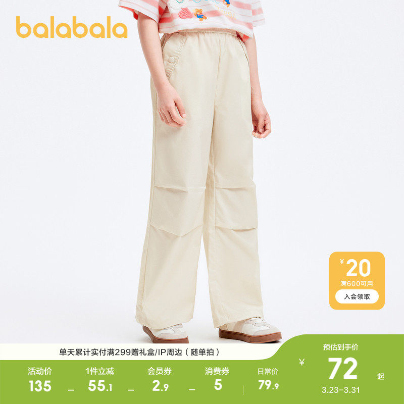 巴拉巴拉女童休闲裤儿童裤子夏季中大童速干降落伞裤透气百搭长裤