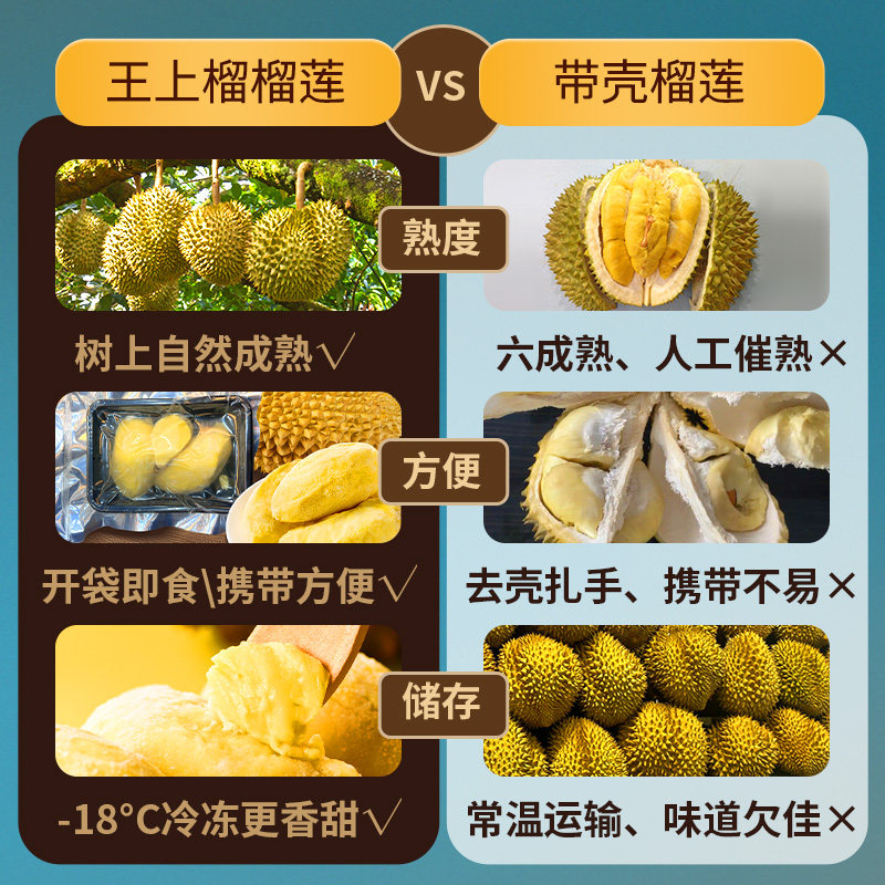 【吉杰直播间】王上榴泰国进口金枕冷冻树熟榴莲果肉速冻水果800g