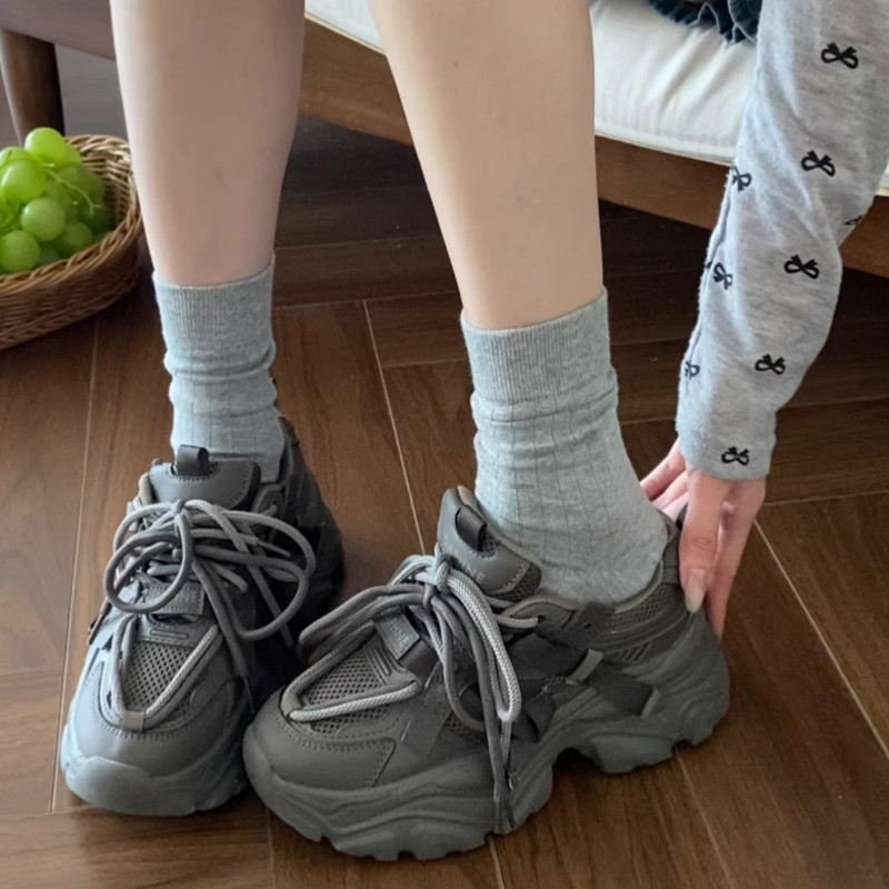 无骨袜子女夏季薄款透气纯色防臭中筒袜芭蕾风灰色堆堆袜配老爹鞋