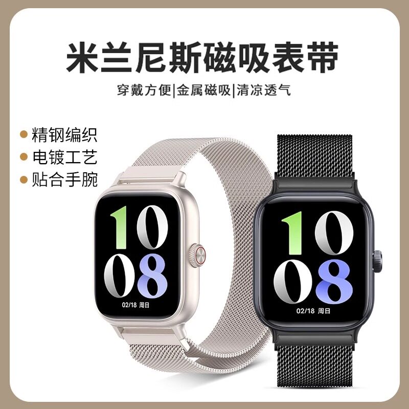 适用vivowatch3/5手表金属米兰磁吸表带vivo/iqooGT夏天腕带运动透气配件男女替换带ins精钢黑色玫瑰金钢带