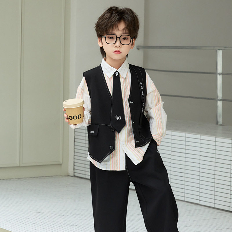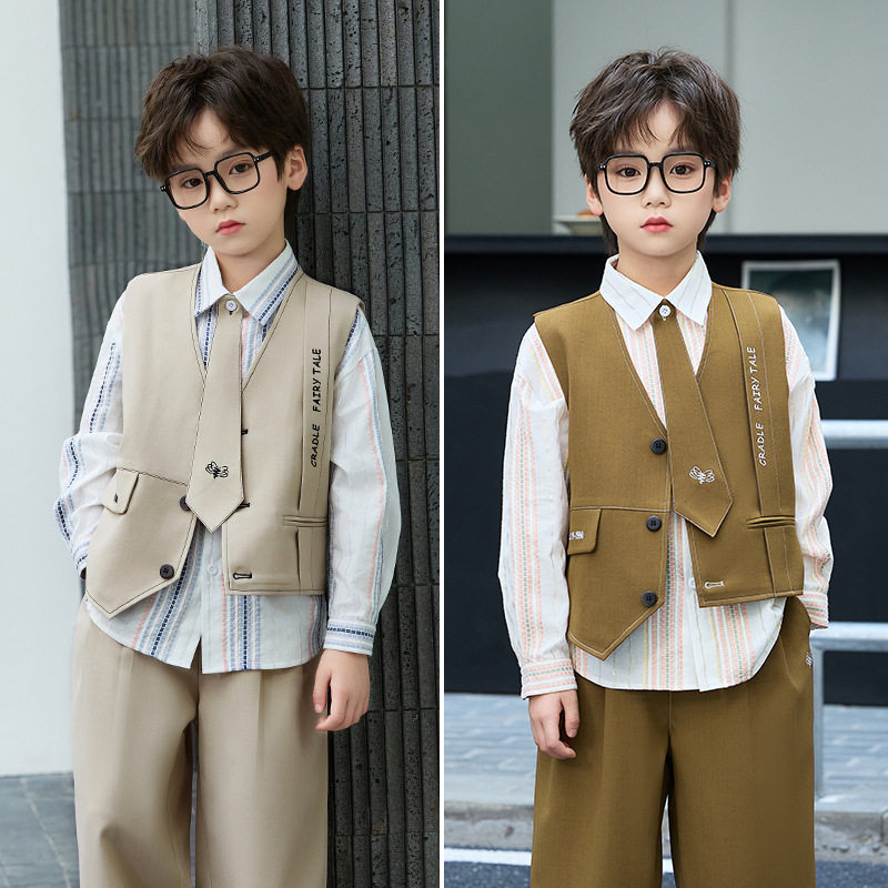 花童男童礼服马甲套装夏婚礼儿童生日小西装男孩主持人毕业演出服
