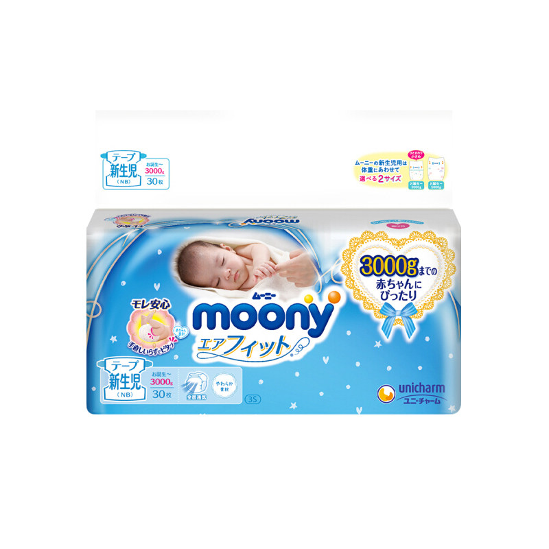 日本尤妮佳moony早产儿纸尿裤3S新生儿婴儿尿不湿NB30片0-3kg通用