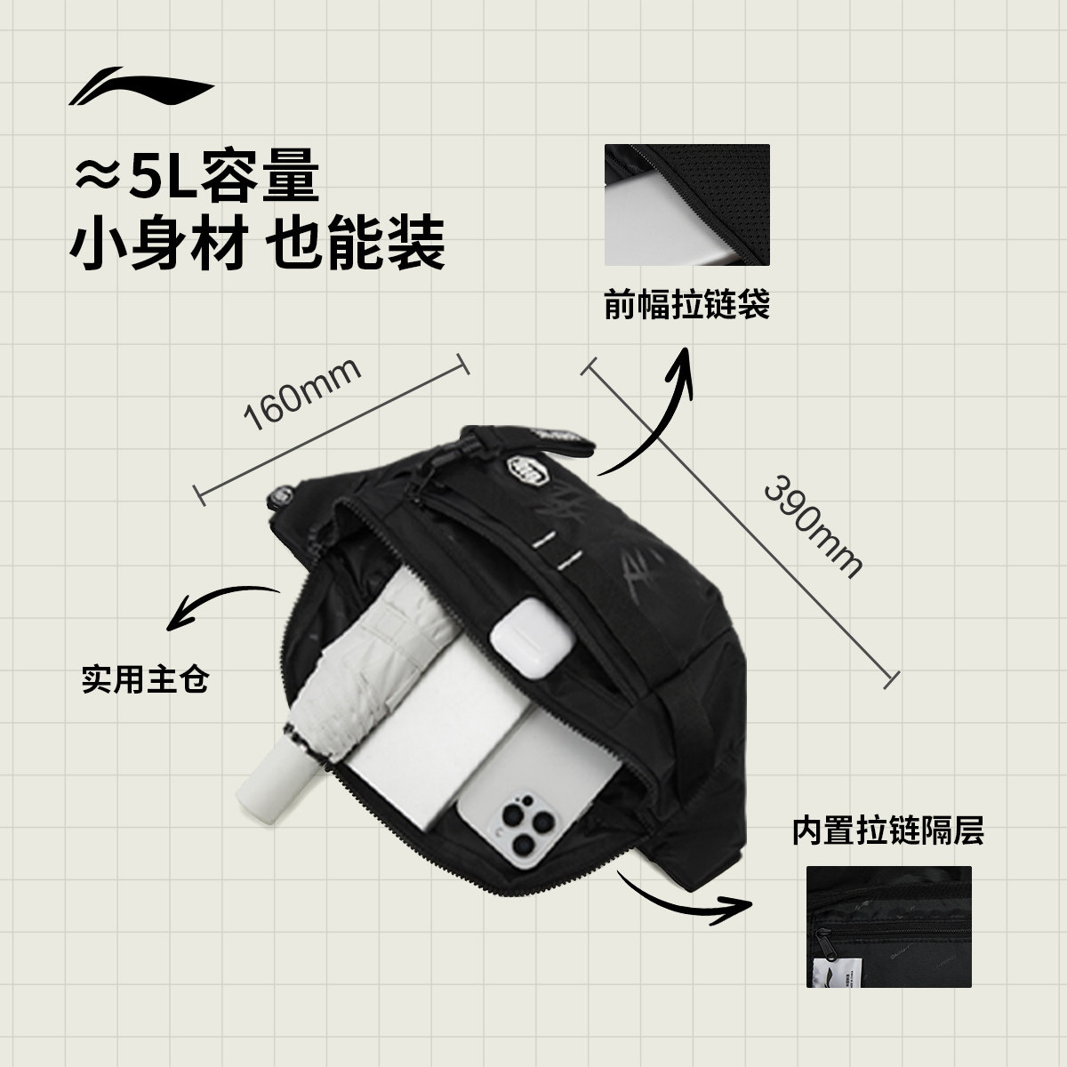 李宁反伍BADFIVE单肩包男包女包2026新款胸包运动包