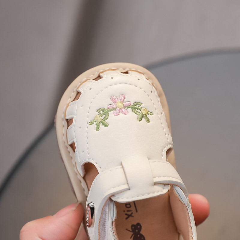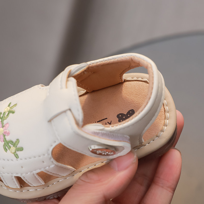 婧麒宝宝凉鞋春夏季新款软底防滑女童包头叫叫凉鞋学步透气室内鞋