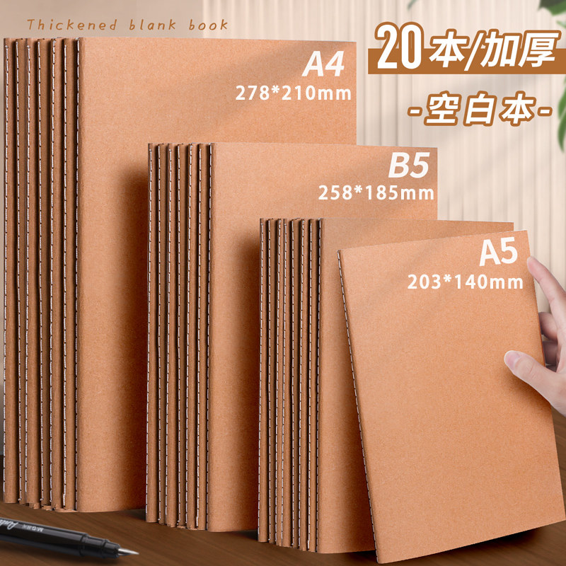 a4空白本牛皮纸笔记本本子无格子无线学生用加厚b5白页白纸大本子a5手绘本绘图写草稿本平摊思维导图纯白素色