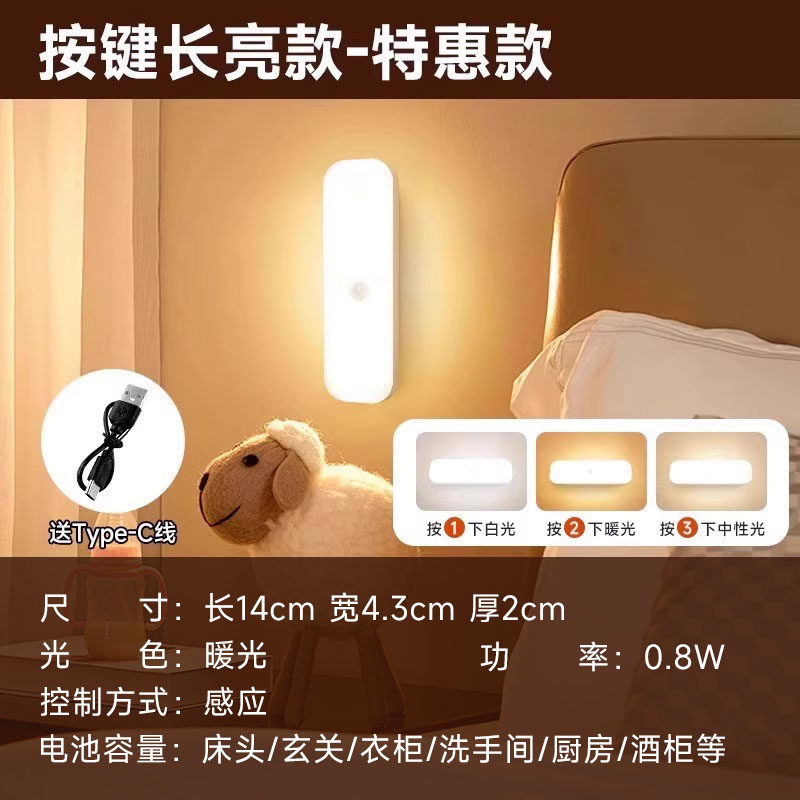 自动人体感应灯起夜卧室婴儿喂奶护眼壁侧发光过道充电小夜灯地脚