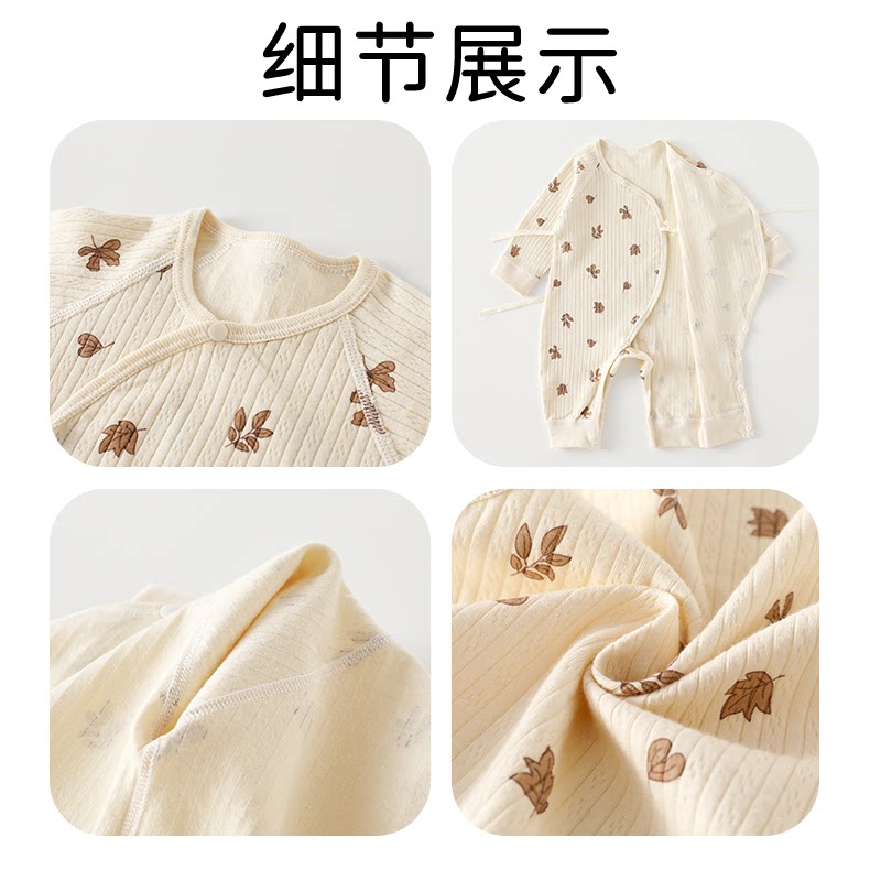 婴儿连体衣纯棉春秋季新生儿无骨打底睡衣初生宝宝哈衣爬服护肚