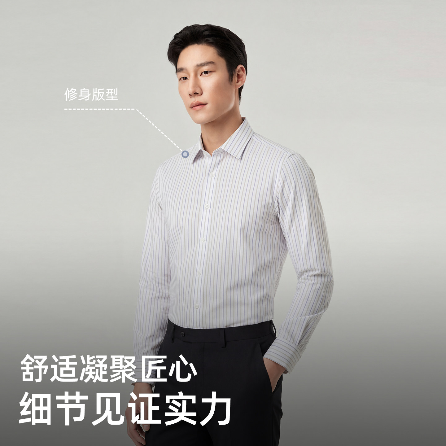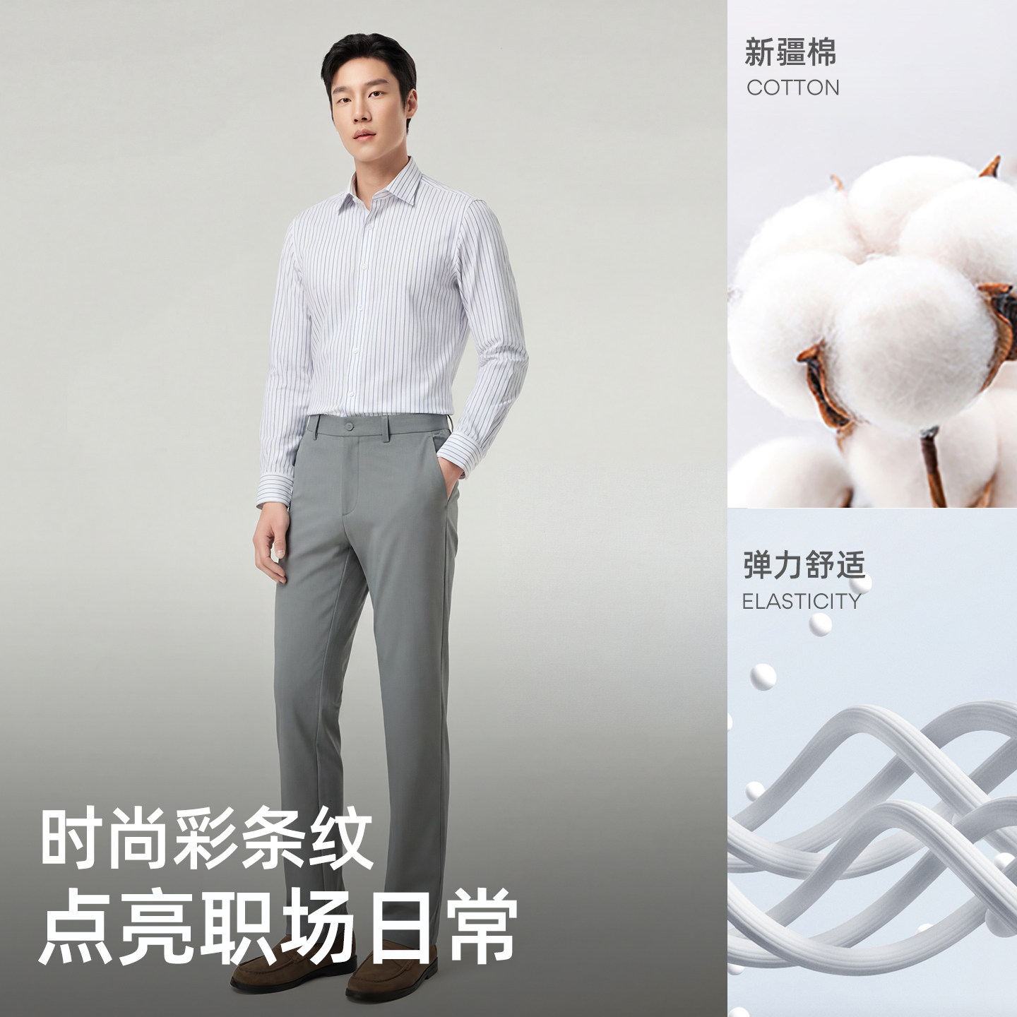 【弹力缎纹免烫】雅戈尔春季男士长袖衬衫商务休闲条纹修身衬衣