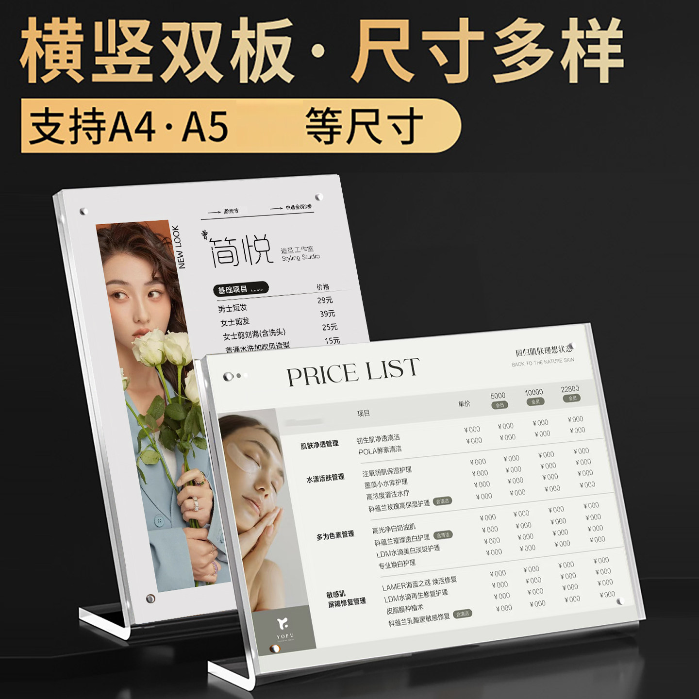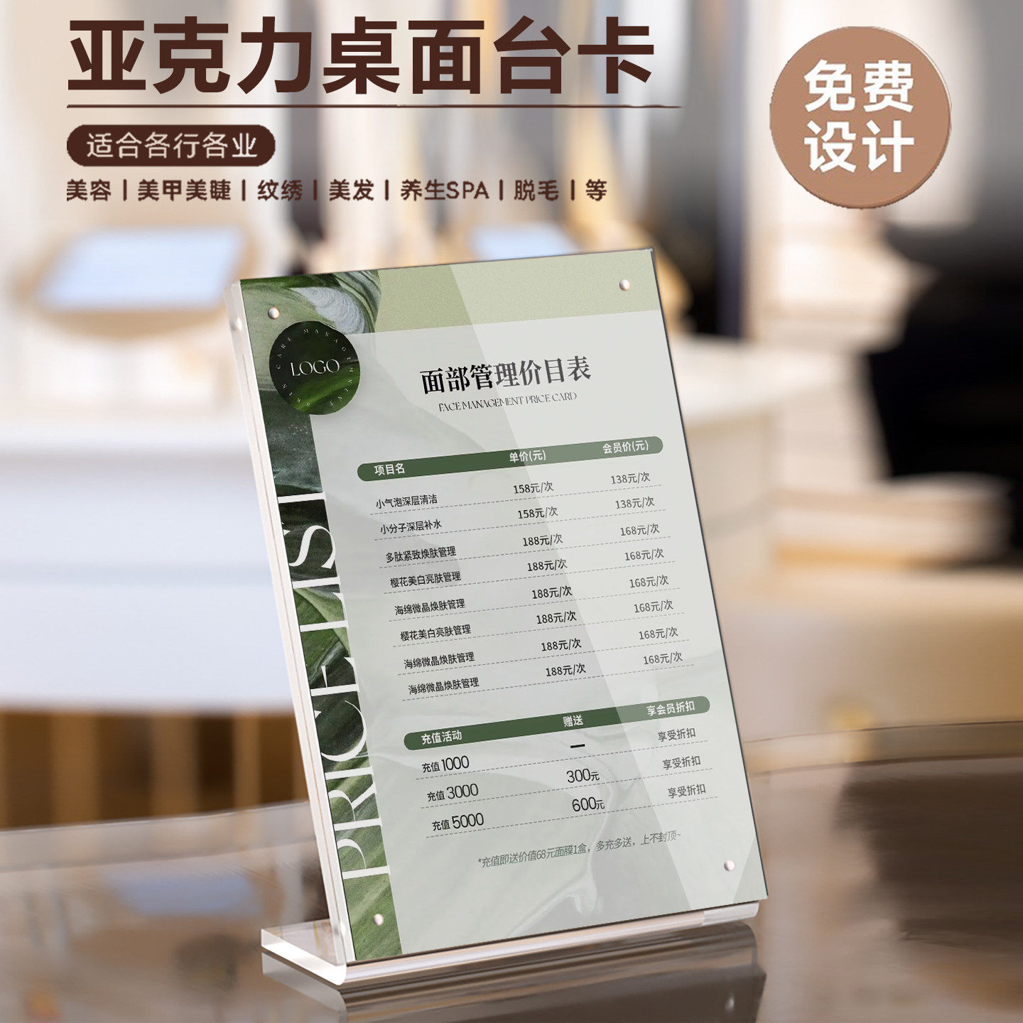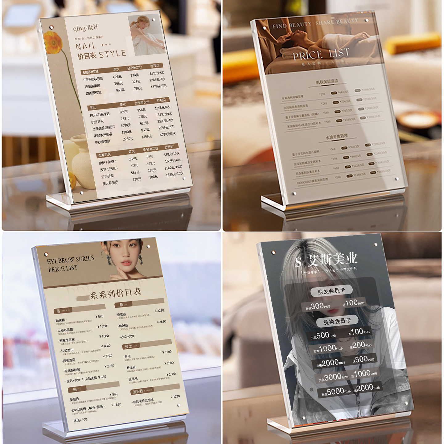 美容院价目表斜面展示牌美发美甲价格表设计定制亚克力桌牌摆台卡