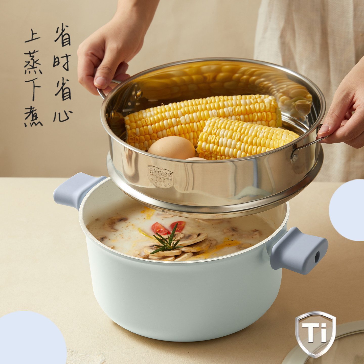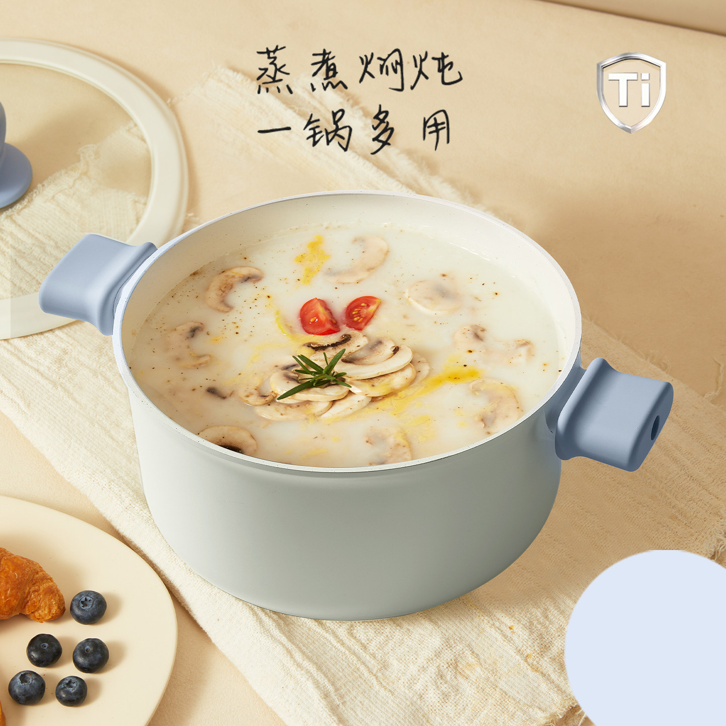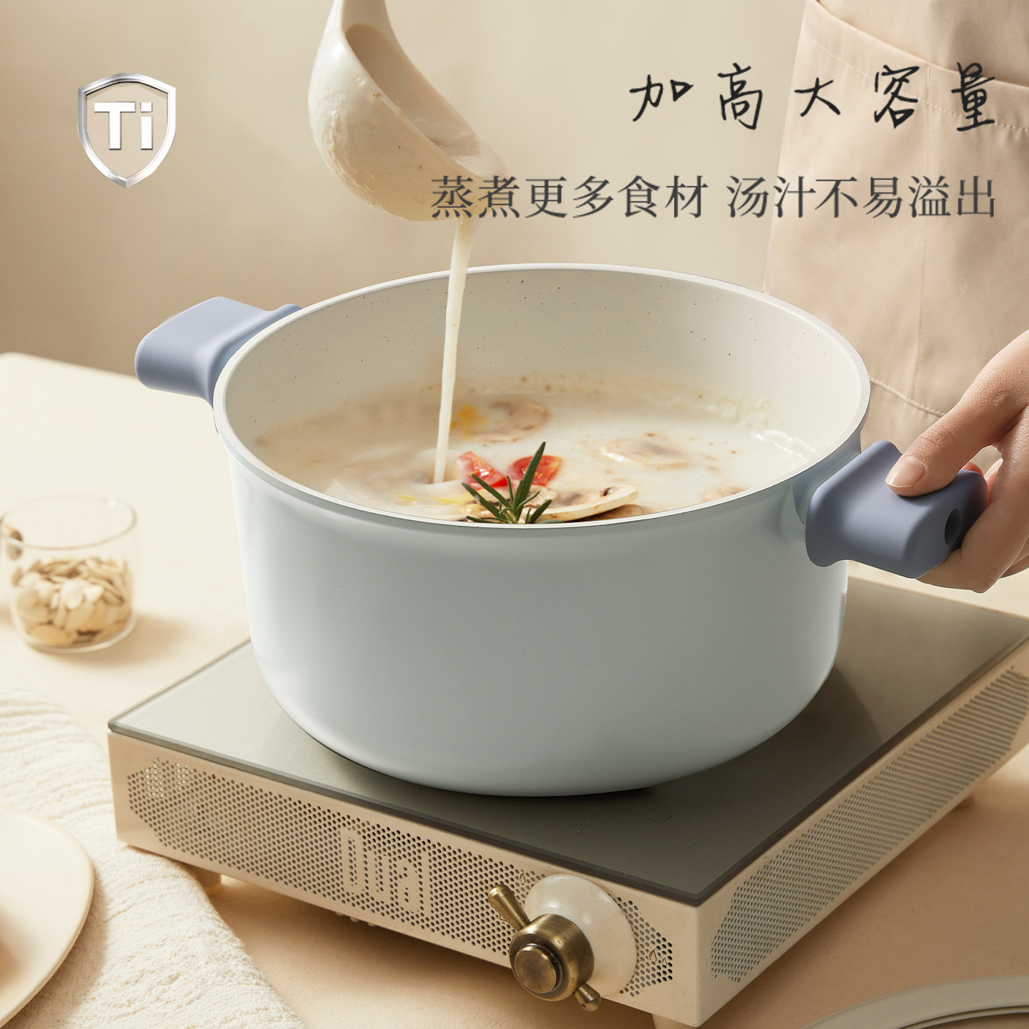 卡罗特汤锅有钛不粘锅家用炖锅奶锅蒸煮煎炒锅电磁炉麦饭石泡面锅