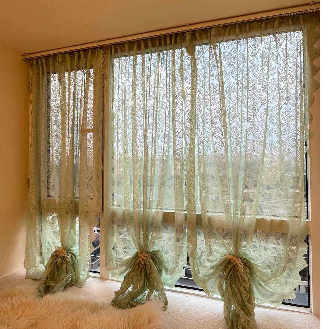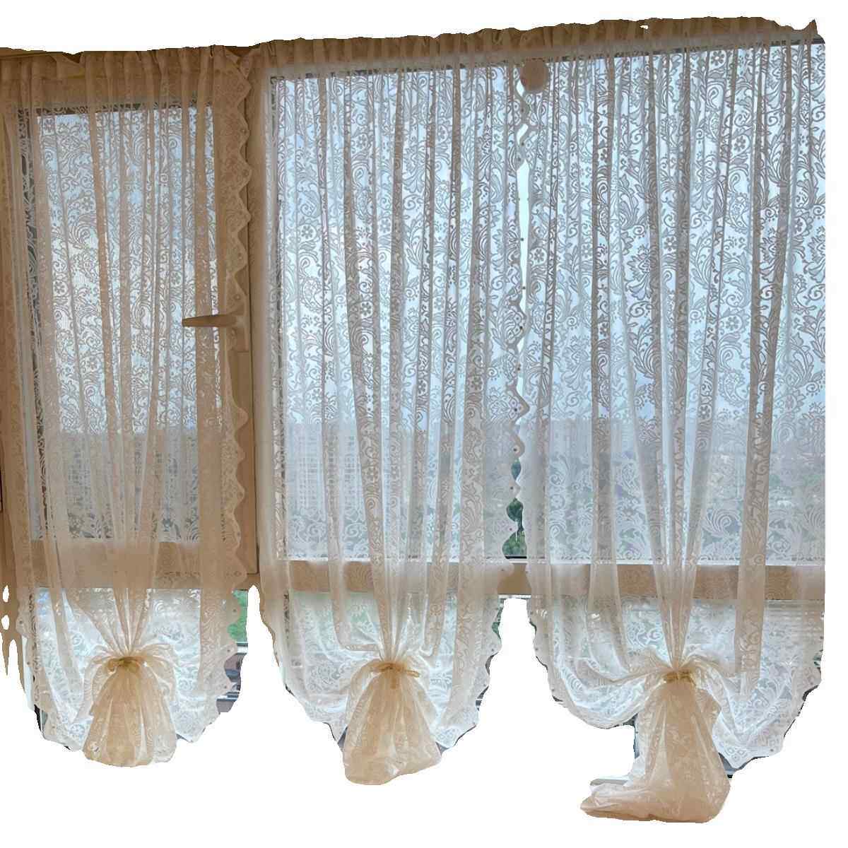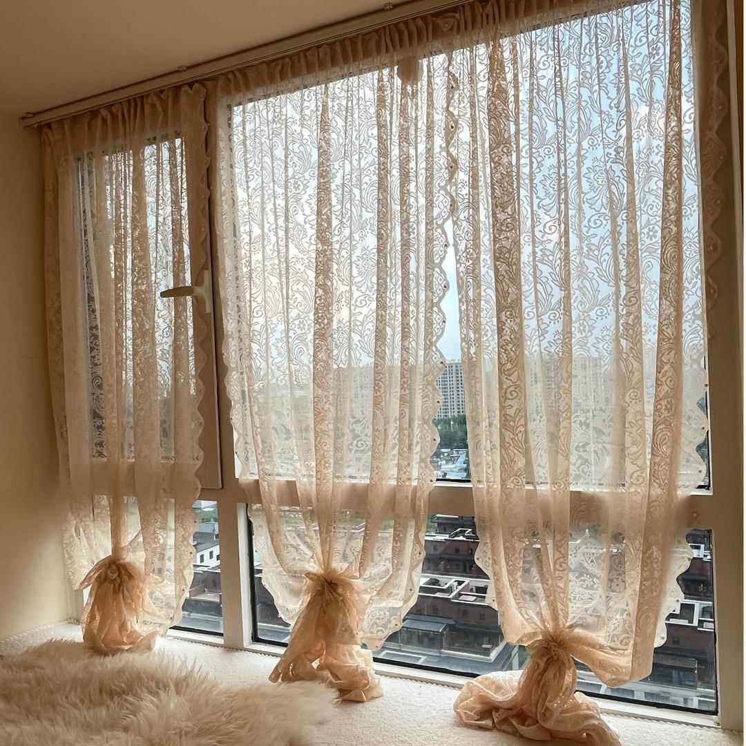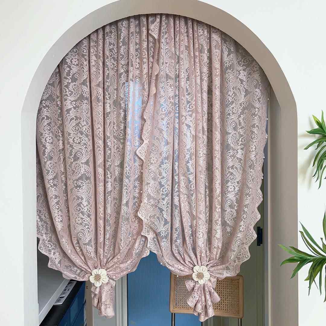 纱帘飘窗内开窗钉珠法式覆古魔术贴免打孔蕾丝田园窗帘门帘隔断窗