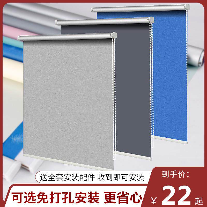 简易办公小窗帘全遮光遮阳防晒隔热免打孔安装卧室化妆室卷拉式帘