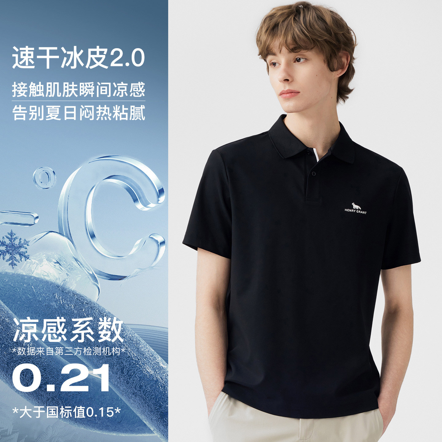 亨利格兰男款凉感短袖POLO衫男士2026夏季新款运动弹力翻领T恤衫