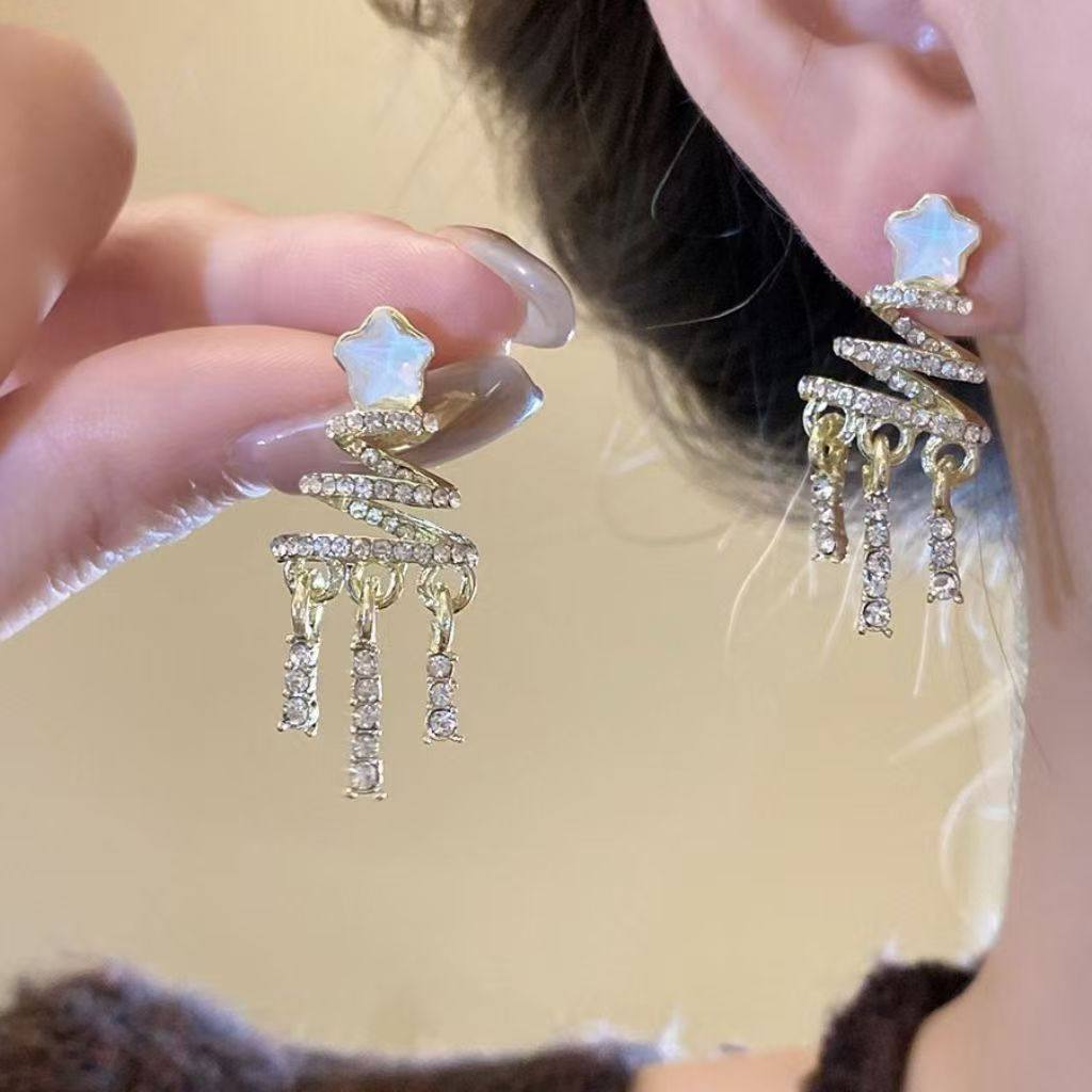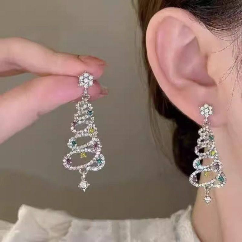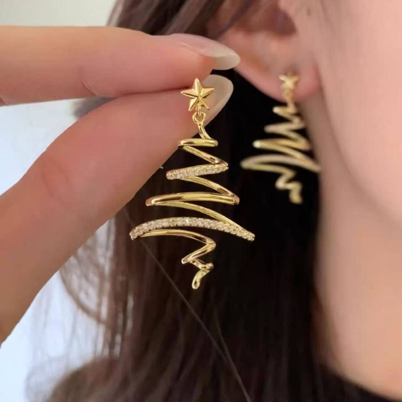 圣诞氛围感圣诞树星星耳钉女轻奢耳环高级感小众耳饰流苏秋冬圆脸