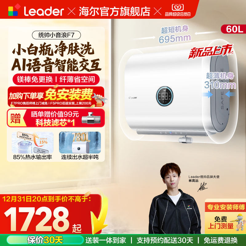 【国家补贴】海尔出品统帅电热水器60L家用一级扁桶小音浪F7