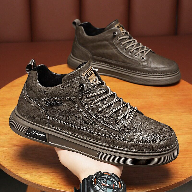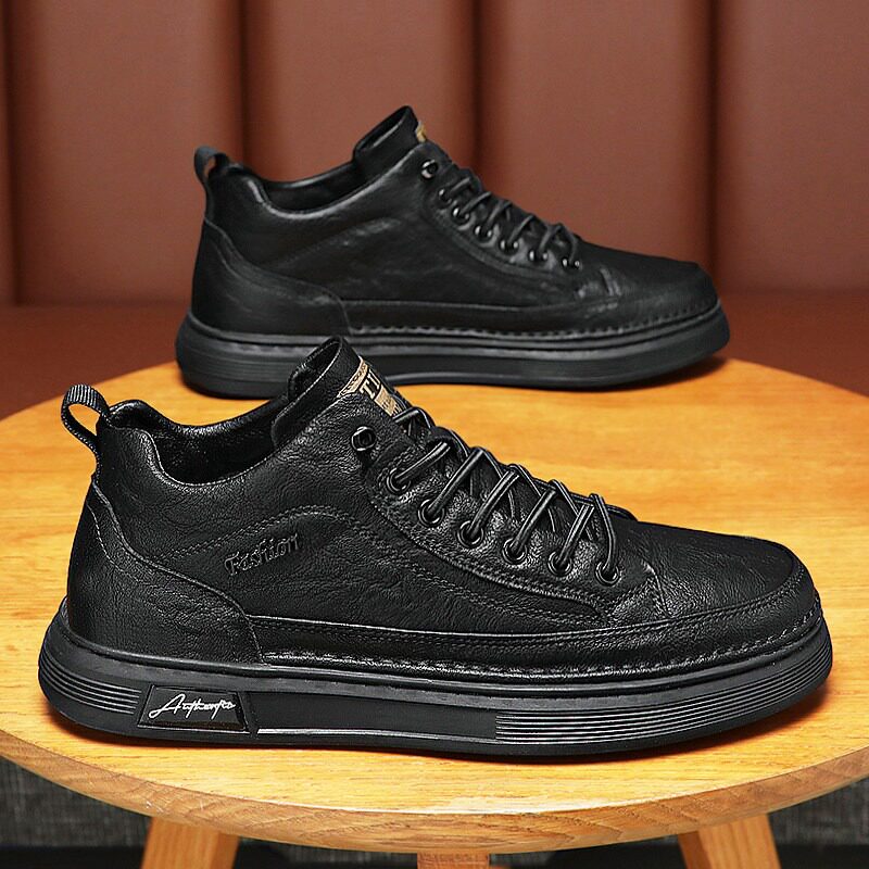 皮鞋男鞋春季厨师上班防滑防水厨房专用休闲黑色耐脏劳保板鞋耐磨