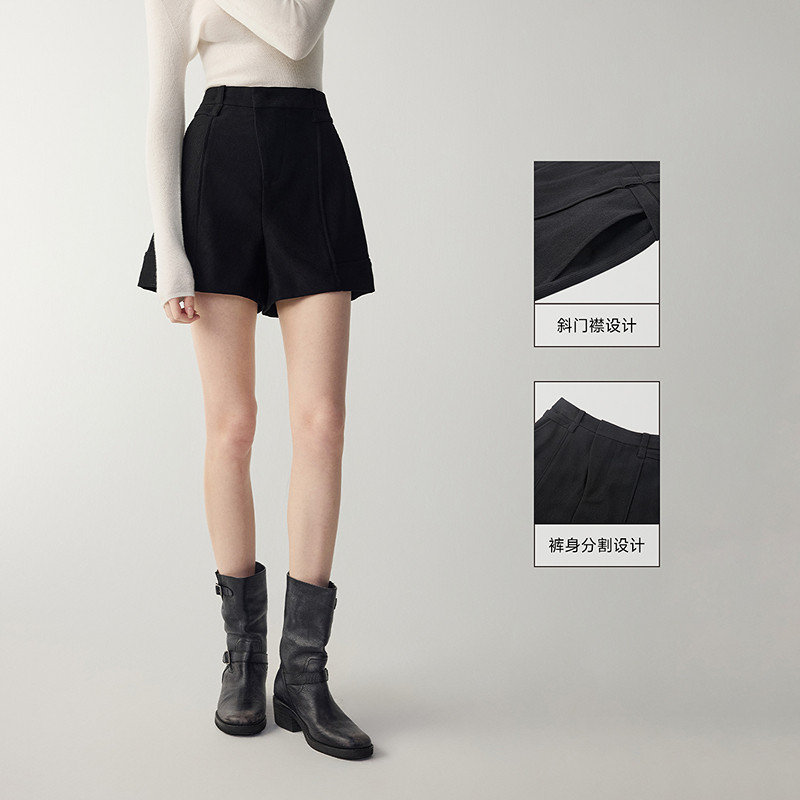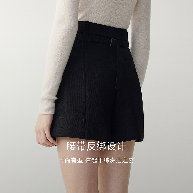 MSLAN仿灯芯绒短裤 26春简约通勤A字高密坑条纹黑色显瘦裤子