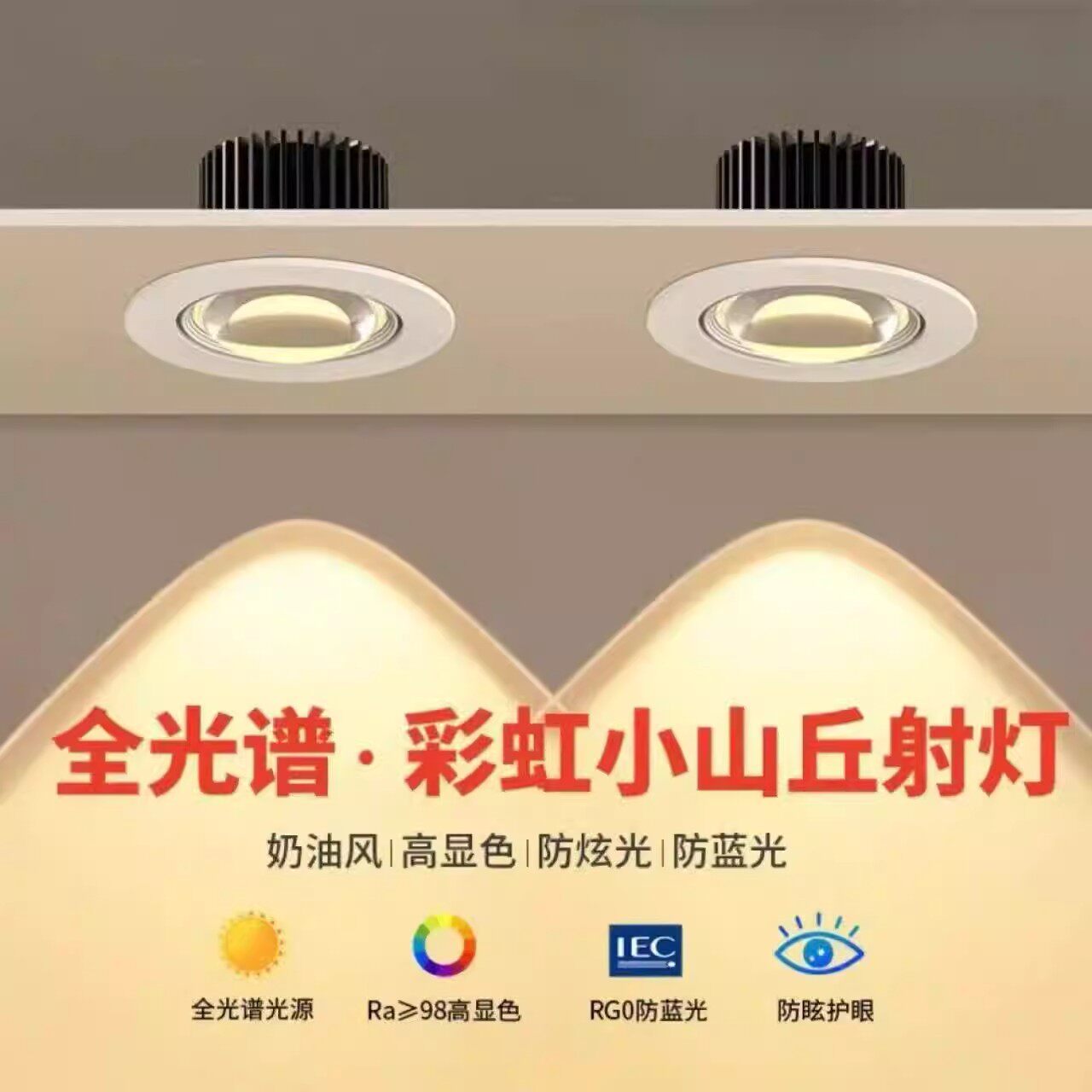 隐形弧面无边框护眼射灯小山丘嵌入式客厅筒射灯无主灯防眩洗墙灯
