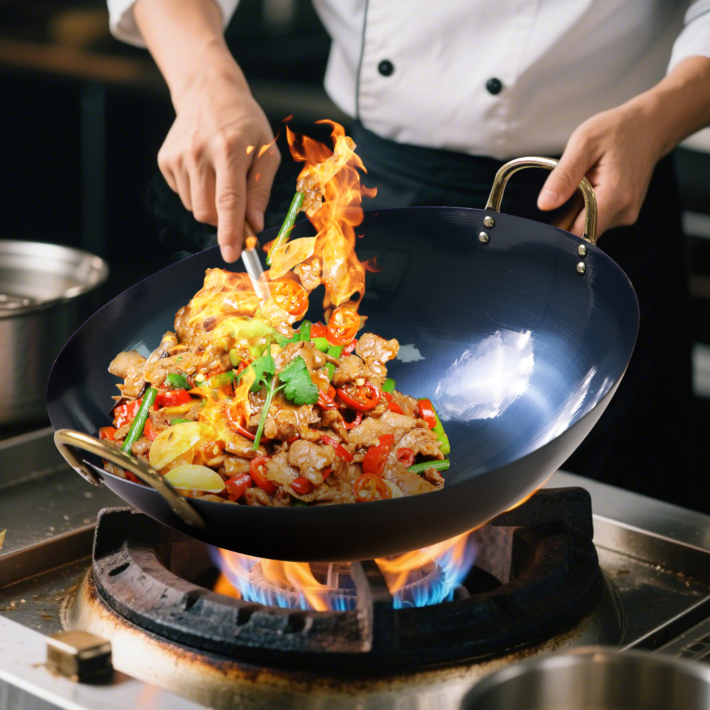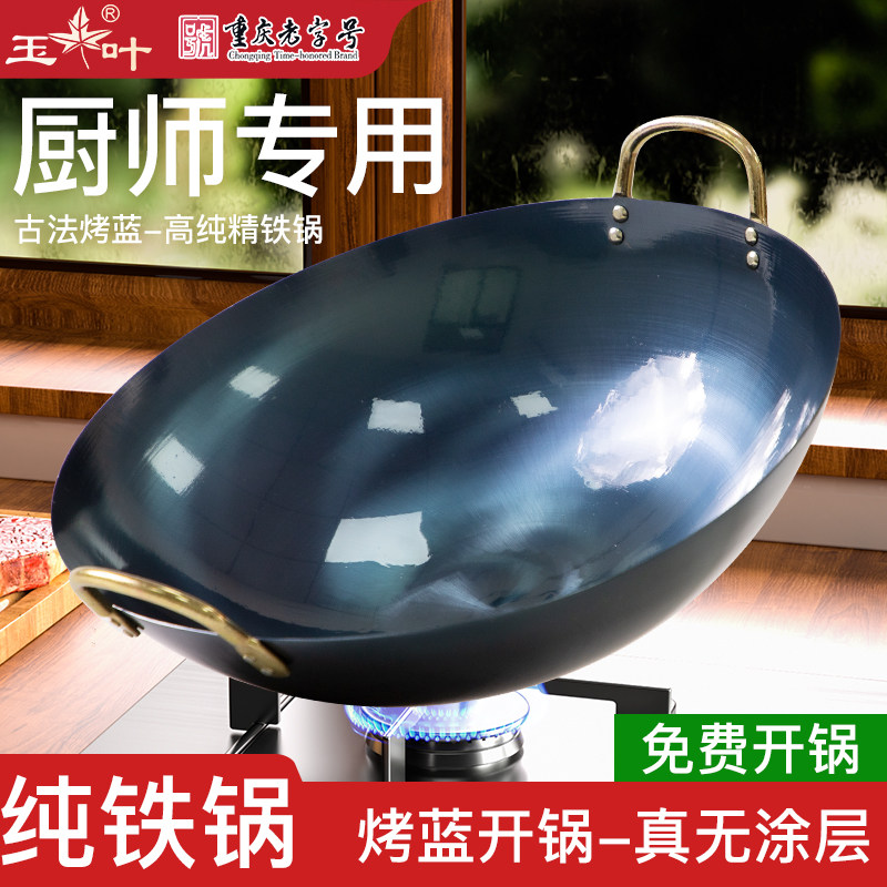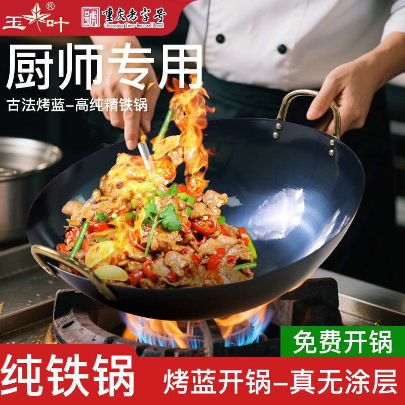 饭店厨师专用老式双耳铁锅家用炒锅煤气灶炒菜锅不粘锅无涂层超轻
