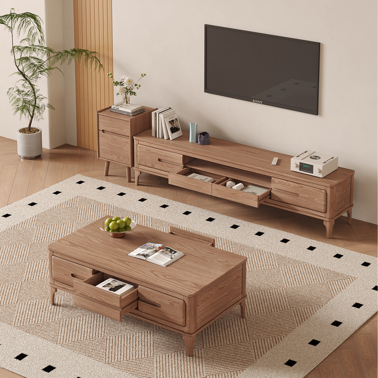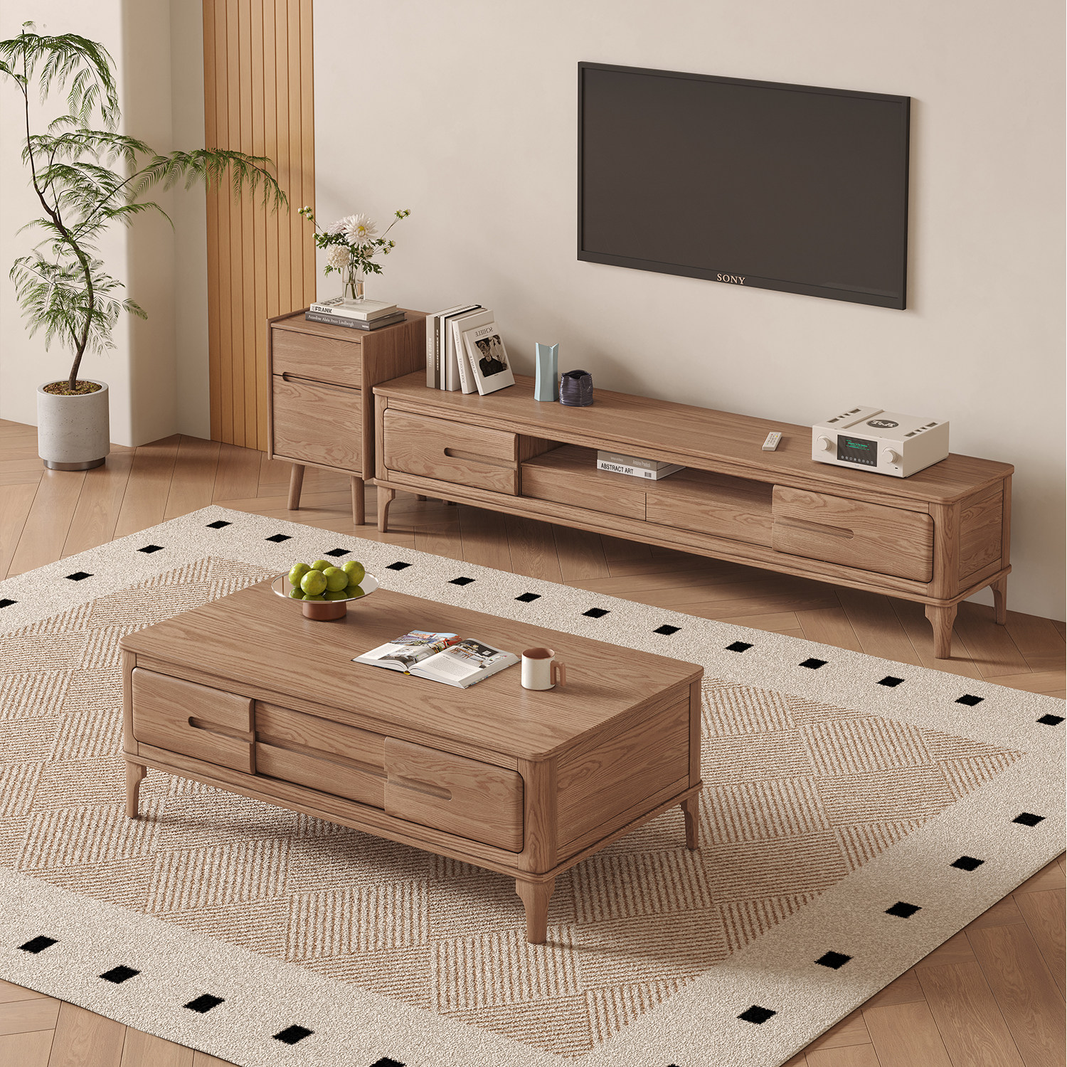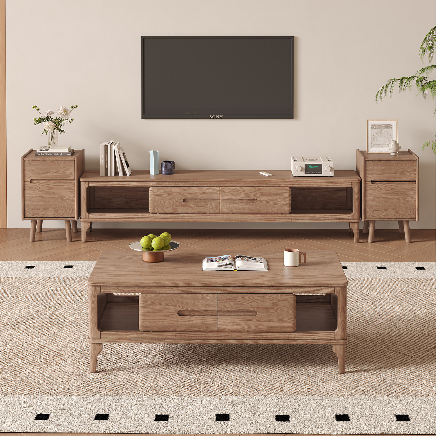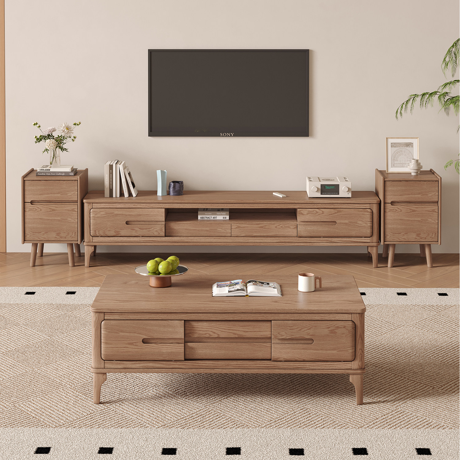 北欧白蜡木茶几现代简约小户型客厅茶桌全实木整装茶几电视柜组合