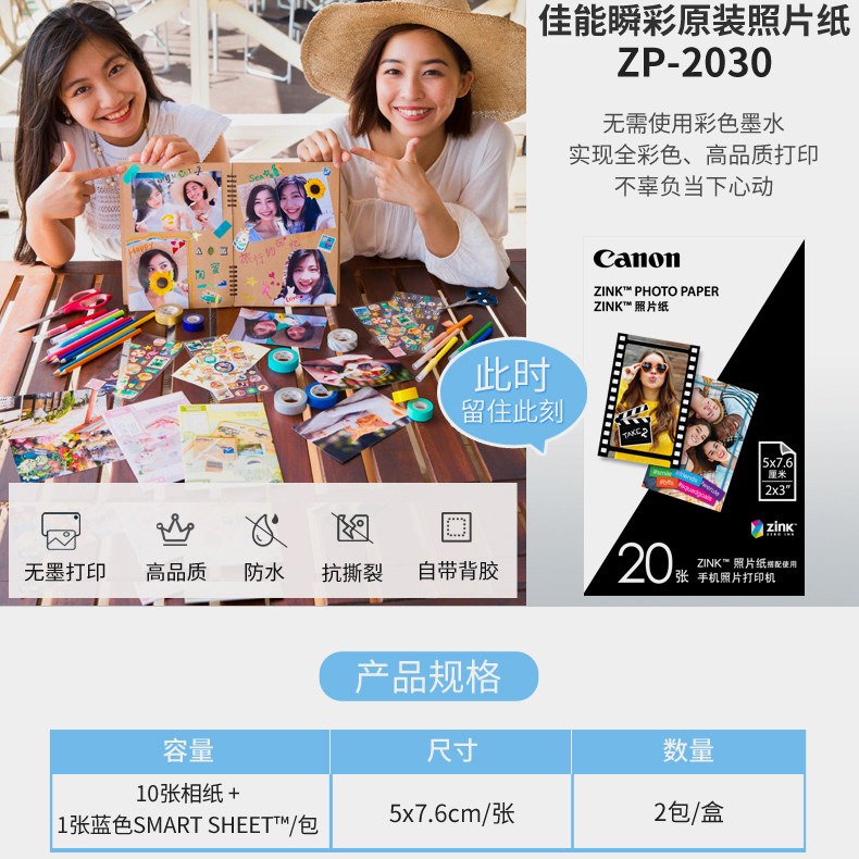 佳能ZP2030原装相片纸佳能PV123照片打印机PV223/ZV123照片纸背胶