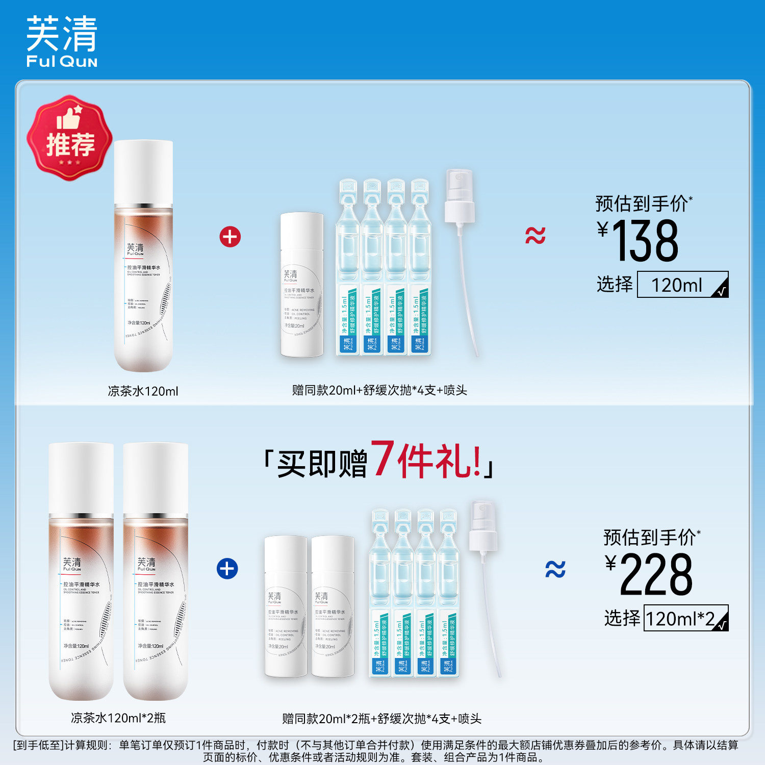芙清凉茶精华水湿敷祛痘控油爽肤水女补水保湿去闭口官方旗舰店