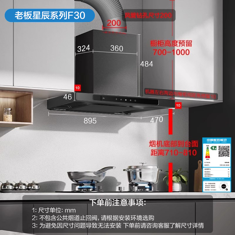 老板F30星辰系列吸油烟机家用抽油烟机厨房大吸力补贴官方旗舰店